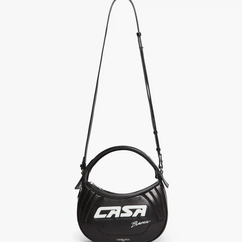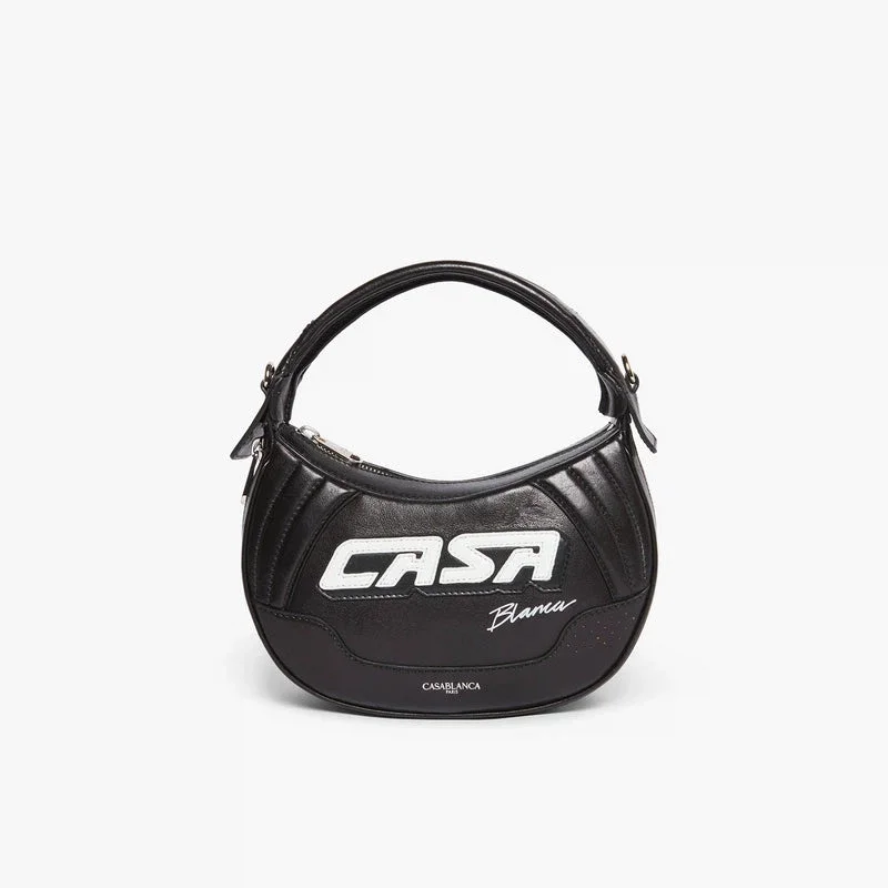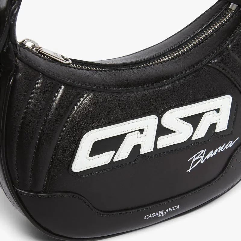 El bolso Biker negro está confeccionado en cuero y presenta la inscripción «Casa» de la casa en la parte delantera. Se completa con una correa, un cierre de cremallera, detalles de cremallera, herrajes plateados y una silueta redondeada. Se suministra con una caja de regalo, una bolsa protectora con la marca y un folleto con los detalles del producto.