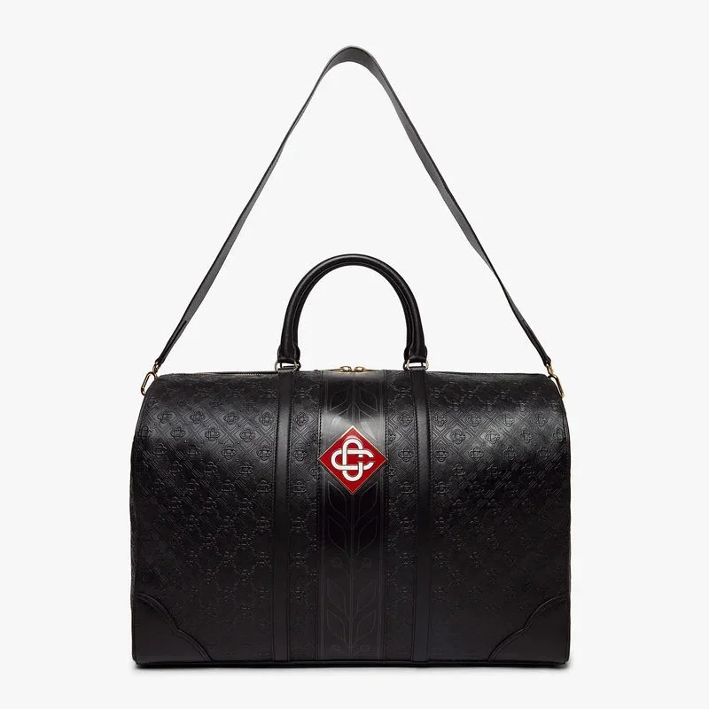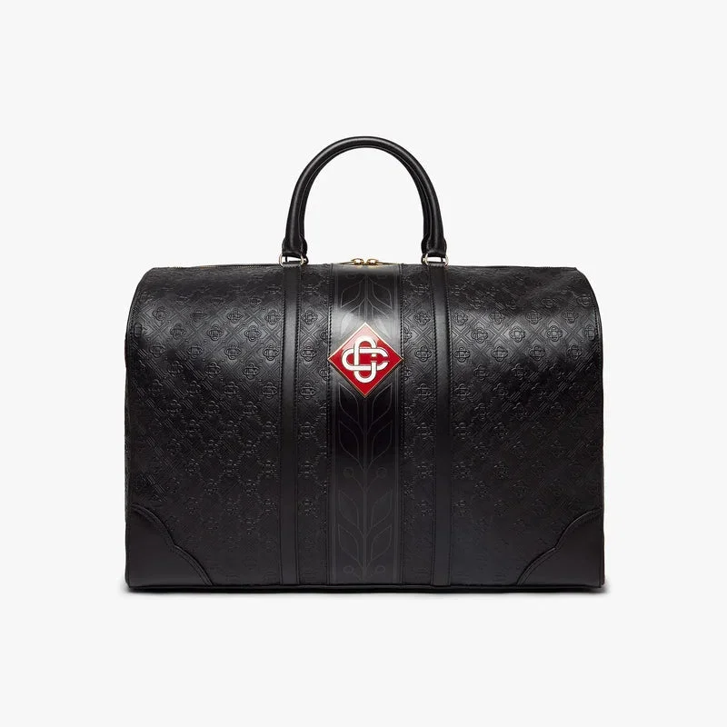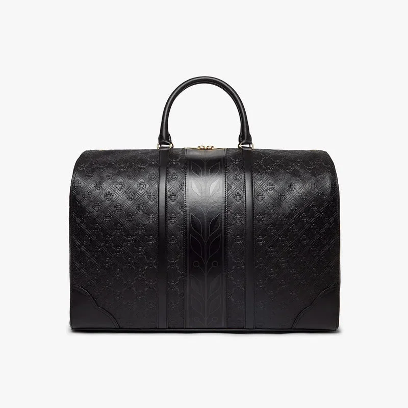 El bolso de fin de semana Monogram negro está confeccionado en piel italiana y adornado con el emblemático logotipo de diamantes de la casa en el lateral. Se completa con el emblemático motivo de laurel de la casa, asas, cierre de cremallera, correa para el hombro, bolsillo interior y herrajes de latón. Se suministra con una caja de regalo con la marca Casablanca, una bolsa protectora y un manual con los detalles del producto.