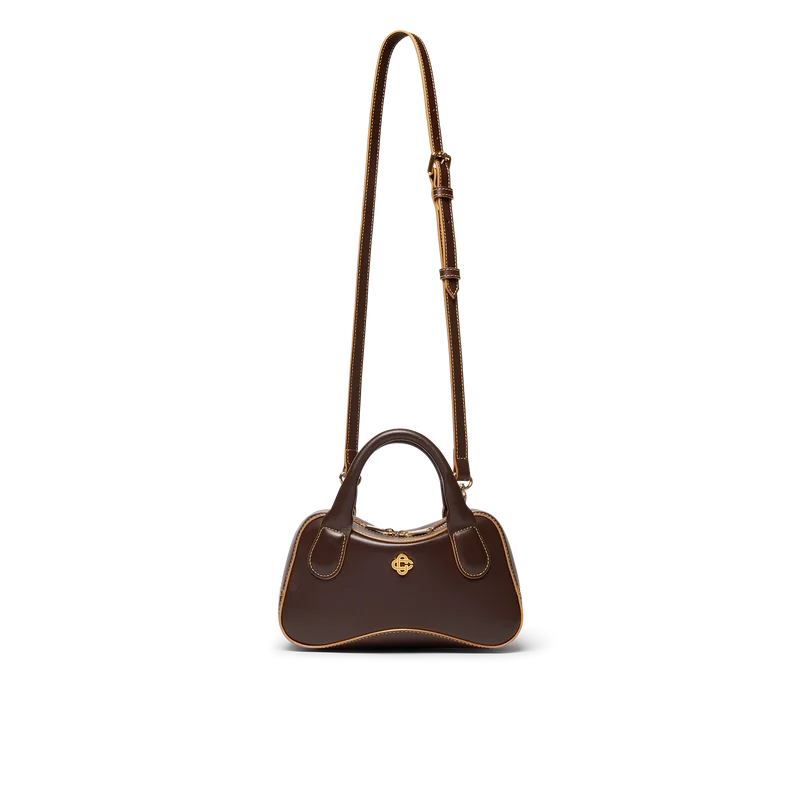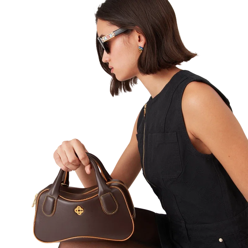 El bolso micro Louise marrón está confeccionado en piel de becerro italiana y adornado con el logotipo CC entrelazado de la casa en herrajes metálicos de alta calidad. Cuenta con cierre de cremallera, una correa ajustable y desmontable, dos asas y un bolsillo interior. Se suministra con una bolsa protectora con la marca Casablanca, una caja de regalo y un folleto con los detalles del producto.