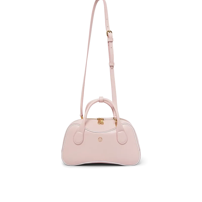 El bolso micro Bowling rosa está confeccionado en piel de becerro italiana y adornado con el emblemático logotipo CC entrelazado de la casa. Se completa con herrajes metálicos chapados en oro de alta calidad, cierre de cremallera, ribete, una correa de hombro ajustable y dos asas.