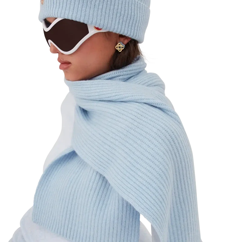 La bufanda Ski es un diseño refinado confeccionado en punto elástico de lana en color blanco, inspirado en la nieve virgen que cubre los pueblos rurales de Hokkaido, en Japón. Evocando bosques de bambú cubiertos de escarcha y granjas enclavadas en valles alpinos, el diseño encarna los códigos Apras-Sport de la casa con una confección precisa.
