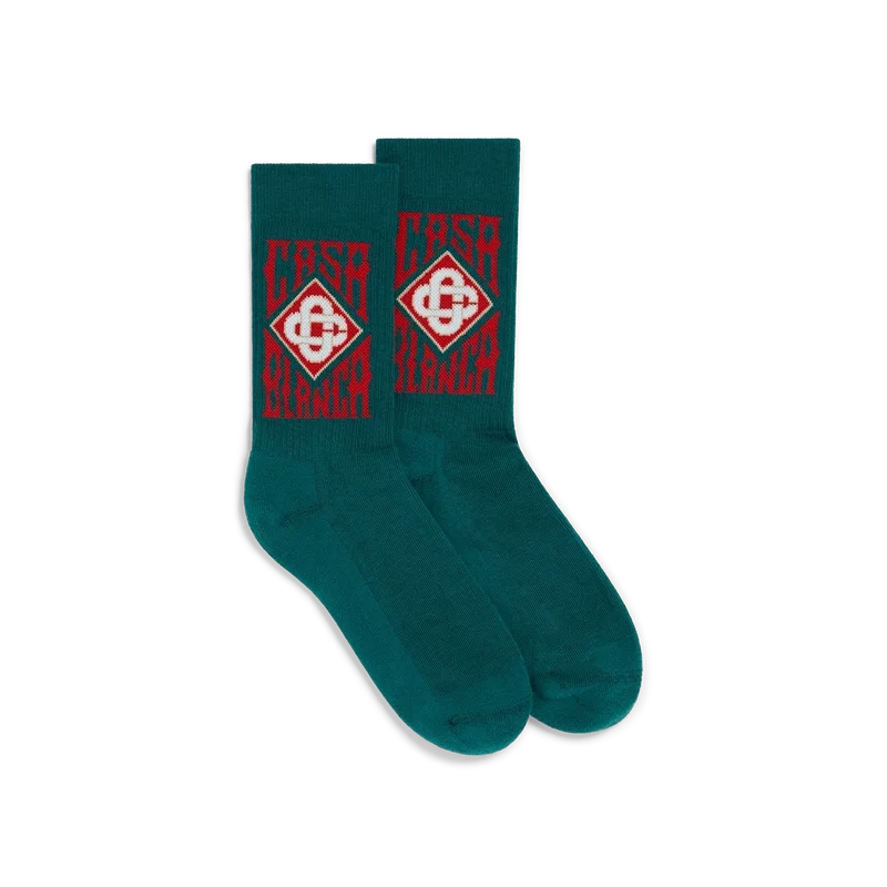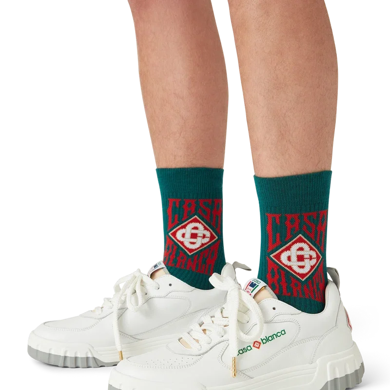 Los calcetines con logotipo gótico están confeccionados con un tejido de mezcla de algodón y presentan el logotipo gótico apilado de la casa. Acabadas con puños acanalados.