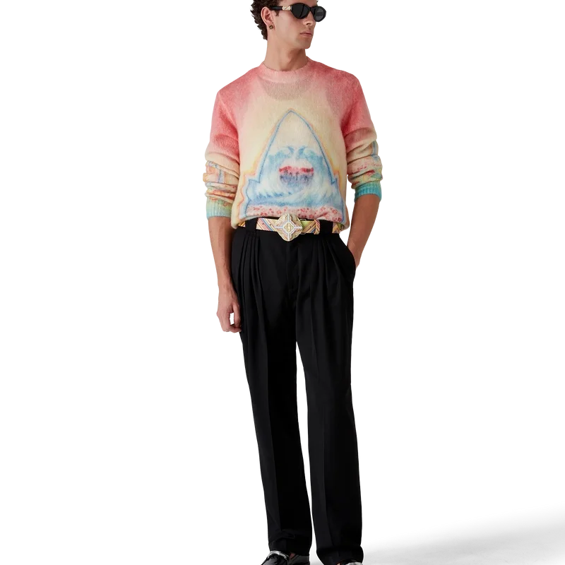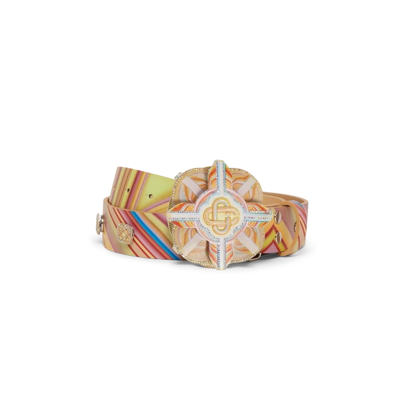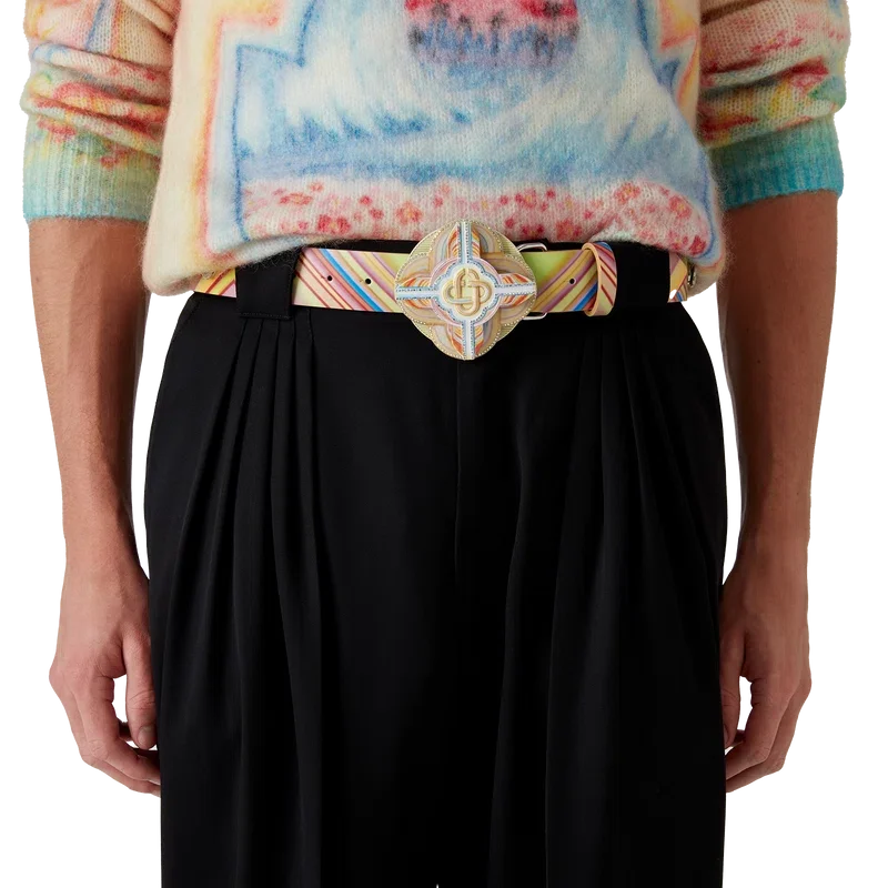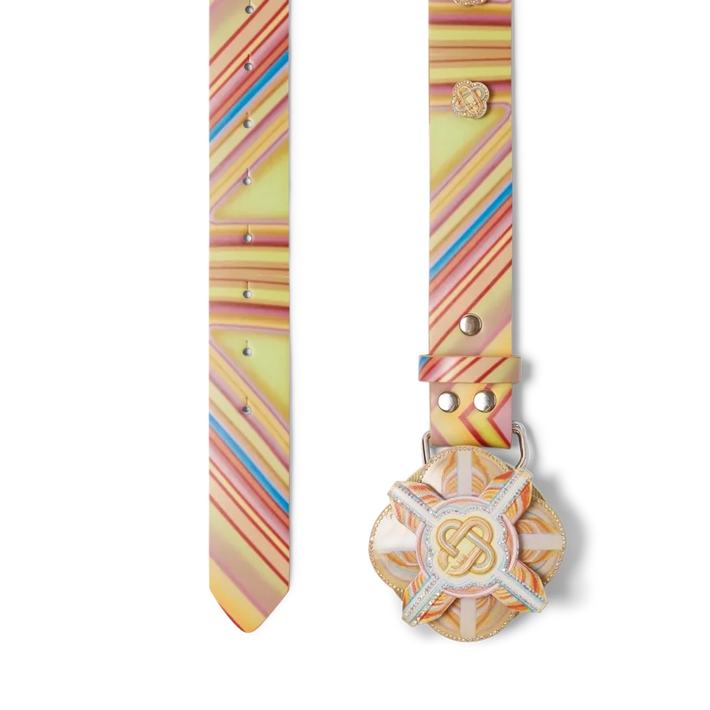 El cinturón Low Rider presenta un diseño multicolor que hace referencia a los colores pop y a las técnicas de pintura con aerógrafo utilizadas en los autos Low Rider. Se completa con el logotipo de Casablanca a lo largo del cinturón y en la hebilla, un disco giratorio y cristales.