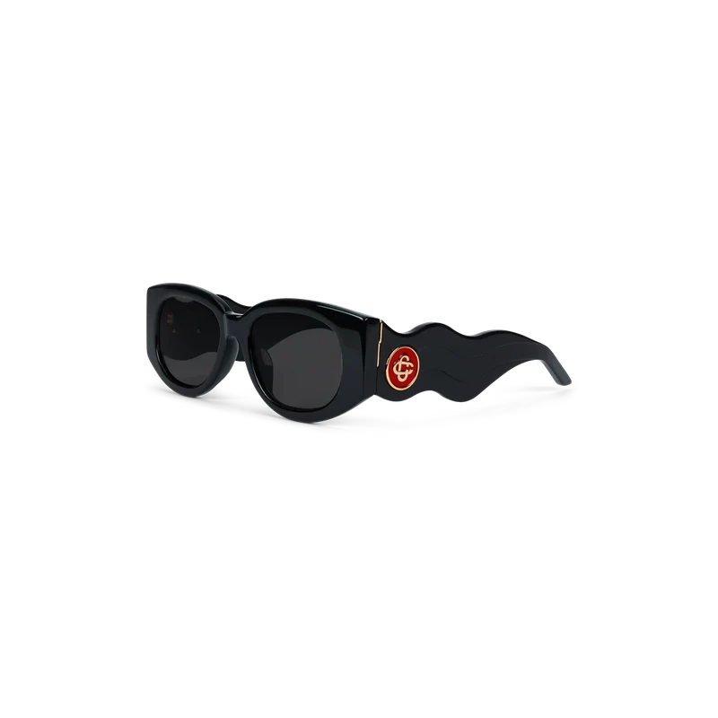 La llamativa estructura de acetato negro de las gafas de sol Memphis define estas gafas de montura rectangular. En ellas, el emblemático logotipo con el Diamond Monogram de Casablanca se encuentra en las patillas. Las lentes con degradado gris ofrecen una protección UV del 100 % y el conjunto se completa con un estuche de Casablanca, un paño de limpieza y un folleto de garantía.