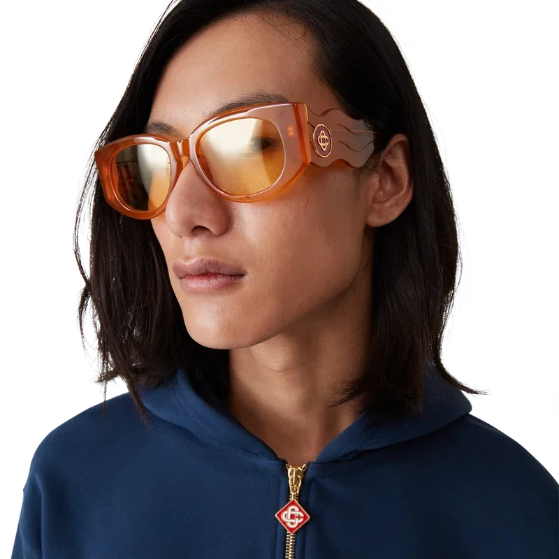 La llamativa estructura de acetato naranja de las gafas de sol Memphis define estas gafas de sol de montura rectangular. Aquí, el logotipo característico del Diamond Monogram de Casablanca se encuentra en las patillas. Las lentes degradadas ofrecen protección 100 % contra los rayos UV y el estilo se completa con un estuche de Casablanca, un paño de limpieza y un folleto de garantía.