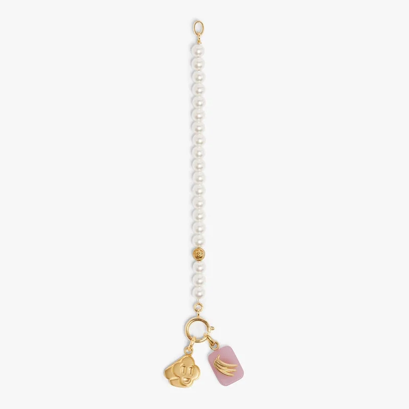 La pulsera Icon Pearl en blanco y dorado es un diseño elegante elaborado con brillantes perlas de agua dulce y latón chapado en oro, que presenta el diseño icónico de la casa acentuado con detalles de cuarzo. Se completa con un cierre chapado en oro. Se suministra con una caja de regalo, una bolsa protectora con la marca y un folleto con los detalles del producto.