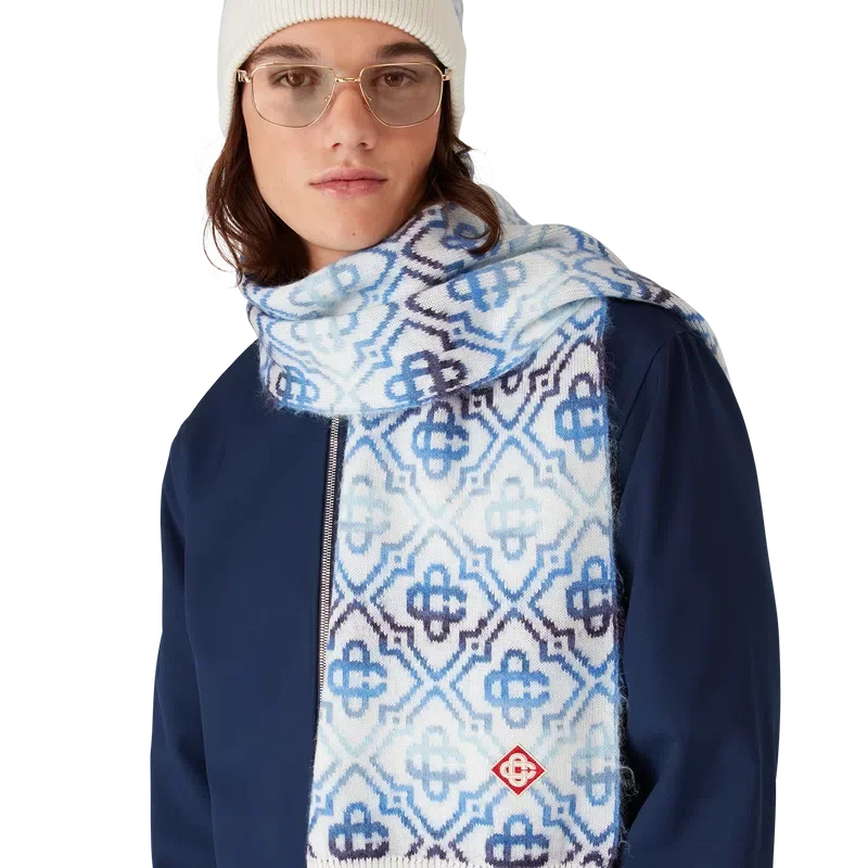 El pañuelo Monogram Space Dye está confeccionado con una lujosa mezcla de lana y presenta el emblemático Diamond Monogram de la Maison, creado con hilos teñidos en espacio que aportan profundidad y dimensión. Rematado con un detalle de borde acanalado.
