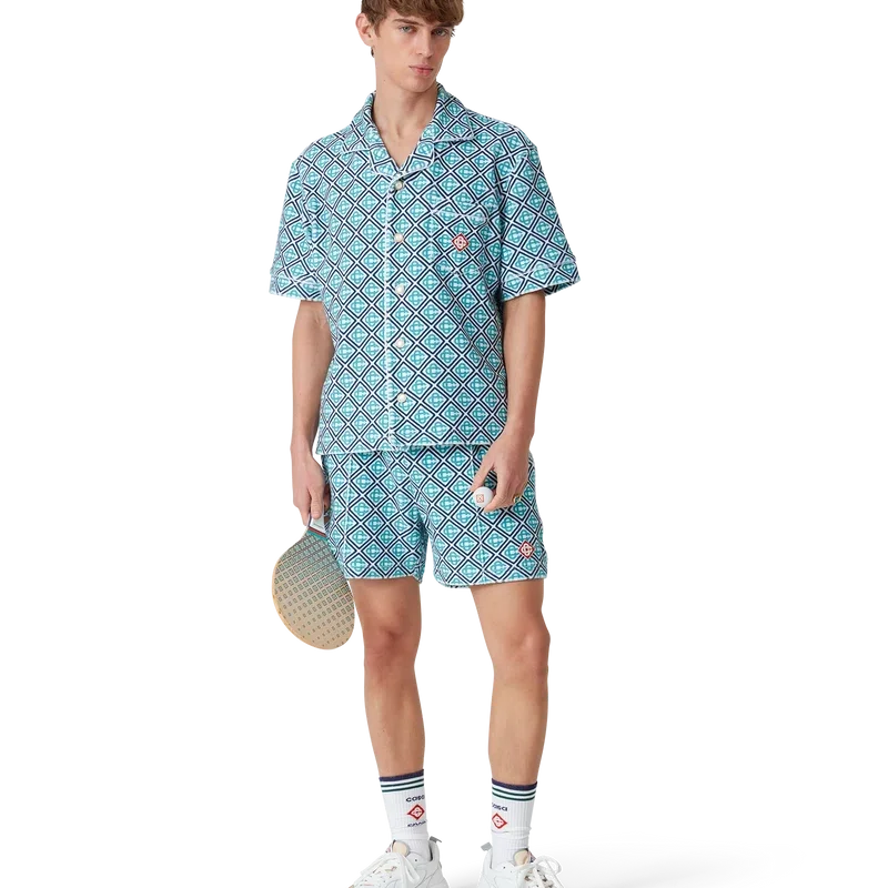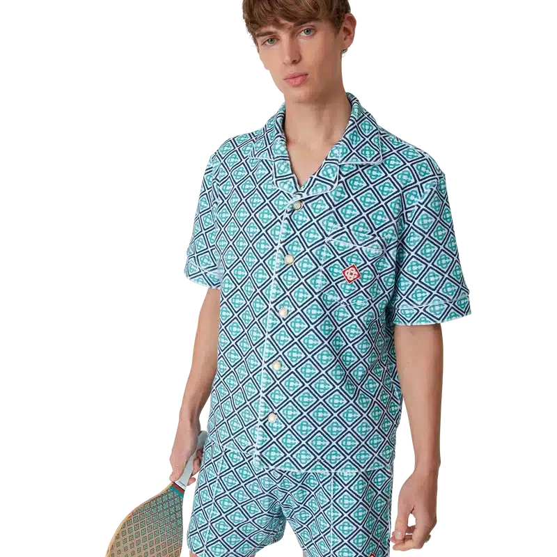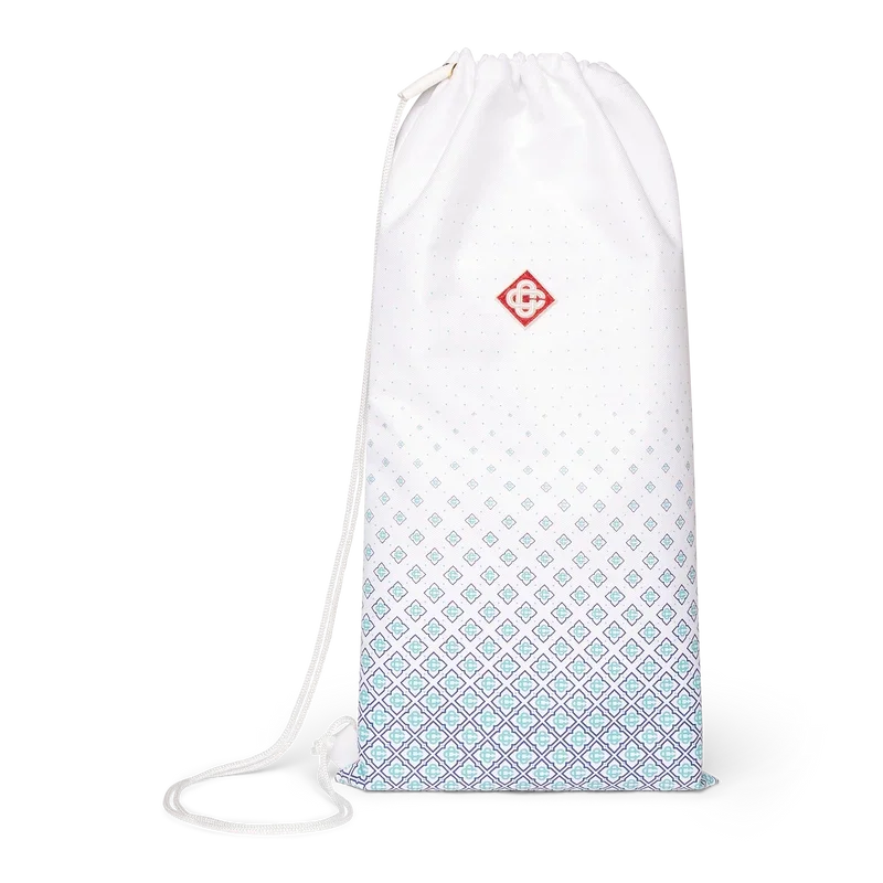 Los bates y pelotas de playa están fabricados en madera contrachapada y pintura al óleo, y presentan el estampado monograma degradado de la casa en las caras. Se completan con detalles de pintura a rayas en color menta, naranja y azul marino en el cuello, un mango blanco y dos pelotas de goma con el logotipo de la marca. Mide 19,2 cm (de ancho) x 39 cm (desde el borde superior de la cara hasta la parte inferior del mango) y viene con su propia bolsa de almacenamiento con el logotipo de la marca y una correa.