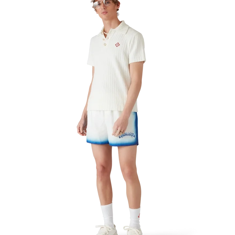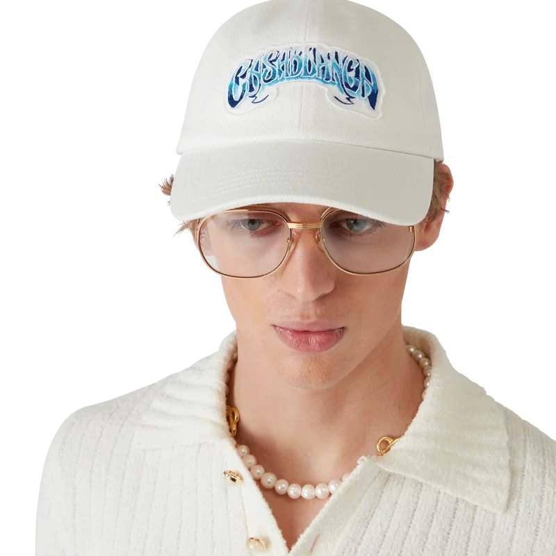 La gorra Blue Fade es un modelo clásico de béisbol confeccionado en tejido de algodón con tipografía dibujada a mano del logotipo de Casablanca, inspirada en la tipografía gótica utilizada en los tatuajes. Se completa con una visera y una hebilla ajustable chapada en oro.
