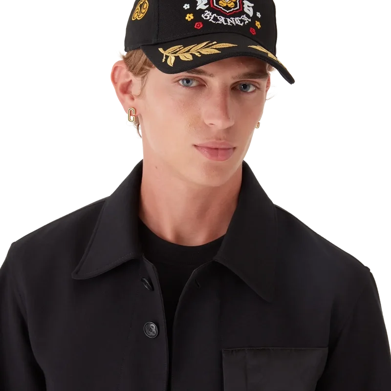La gorra con laurel bordado BōSōZoku es un modelo clásico de béisbol confeccionado en sarga de algodón con el diseño de esta temporada, en el que nos inspiramos en la subcultura japonesa del BōSōZoku como uno de nuestros temas principales. El contraste entre los elementos gráficos y el texto nos pareció muy al estilo de Casablanca. El diseño es poco convencional, pero la composición está cuidadosamente equilibrada, lo que le da un aire único y a la vez armonioso. Se completa con una visera con detalle de hoja de laurel dorada y una hebilla ajustable chapada en oro.