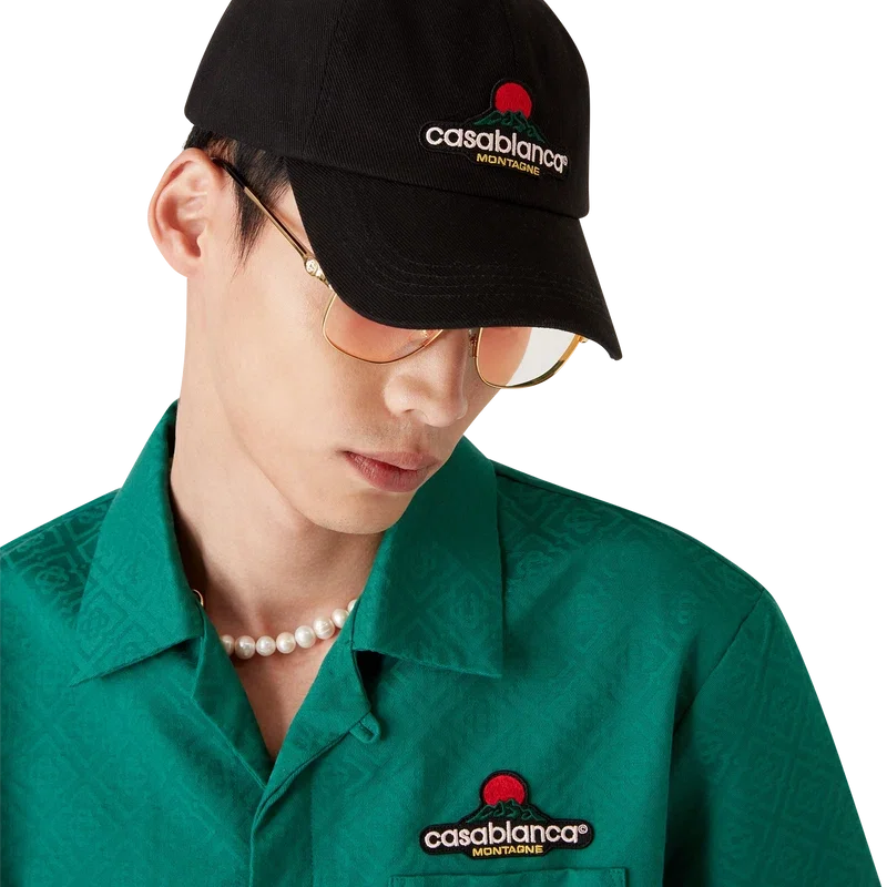 La gorra Montagne es un modelo clásico de béisbol que presenta el diseño de la temporada —un logotipo que a primera vista parece una montaña, pero que al mirarlo más de cerca se lee como «Casa»— en el centro. Confeccionada en tela de algodón, la gorra cuenta con una visera y una hebilla ajustable chapada en oro.