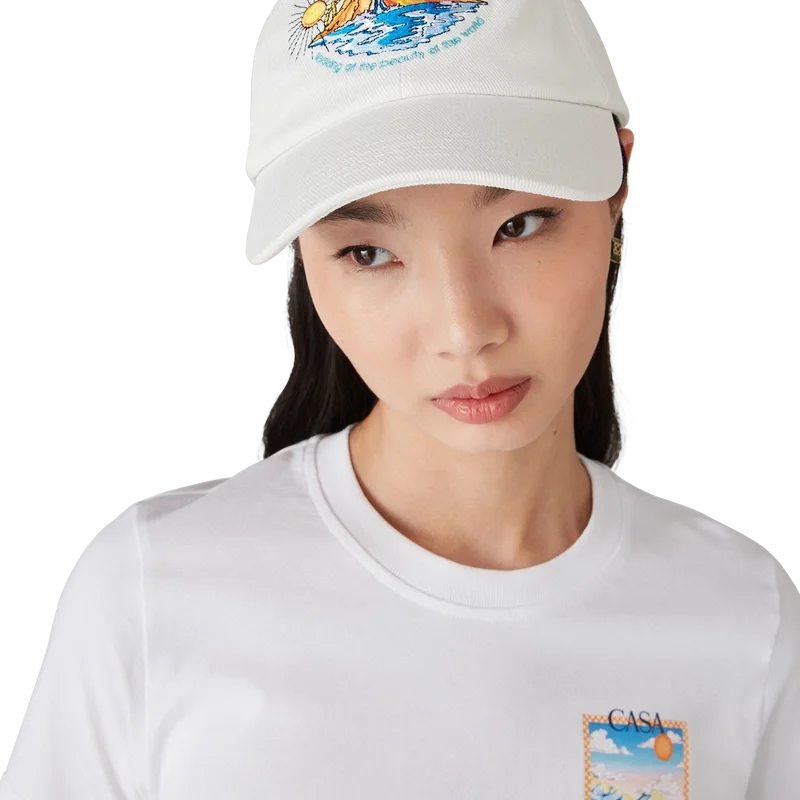 La gorra Oasis es una gorra de béisbol clásica confeccionada en tela de algodón que presenta el diseño de temporada de la casa con elementos de la naturaleza, la arquitectura y el tenis. Se completa con una visera y una hebilla ajustable chapada en oro.