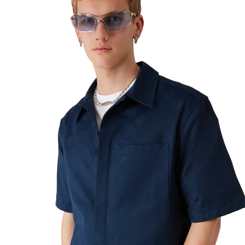Camisa de pantalón corto con monograma azul marino