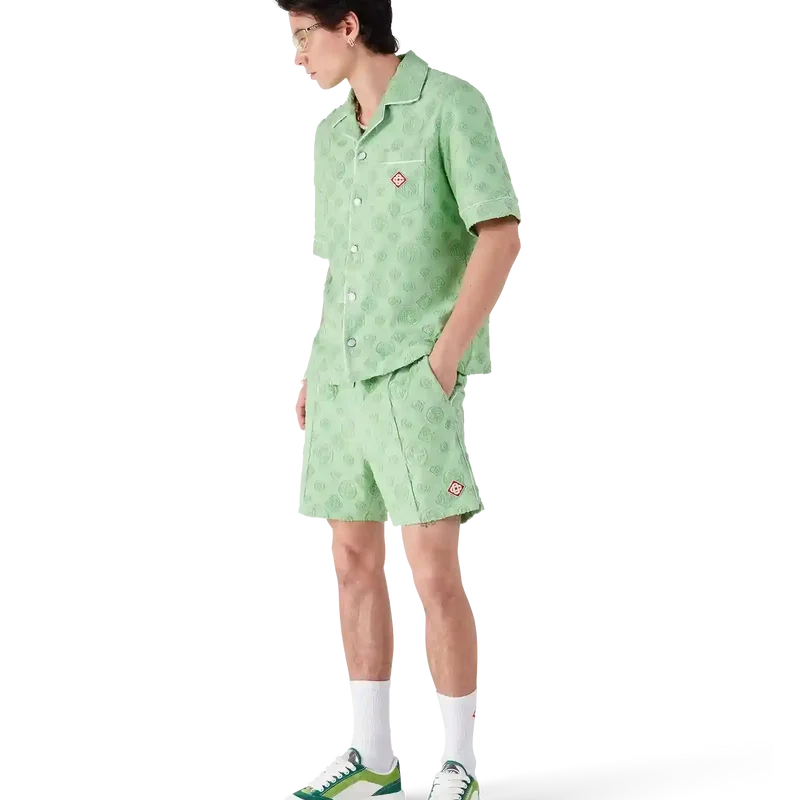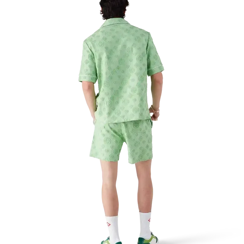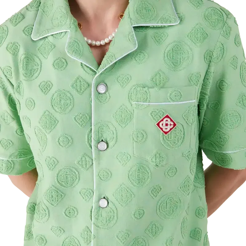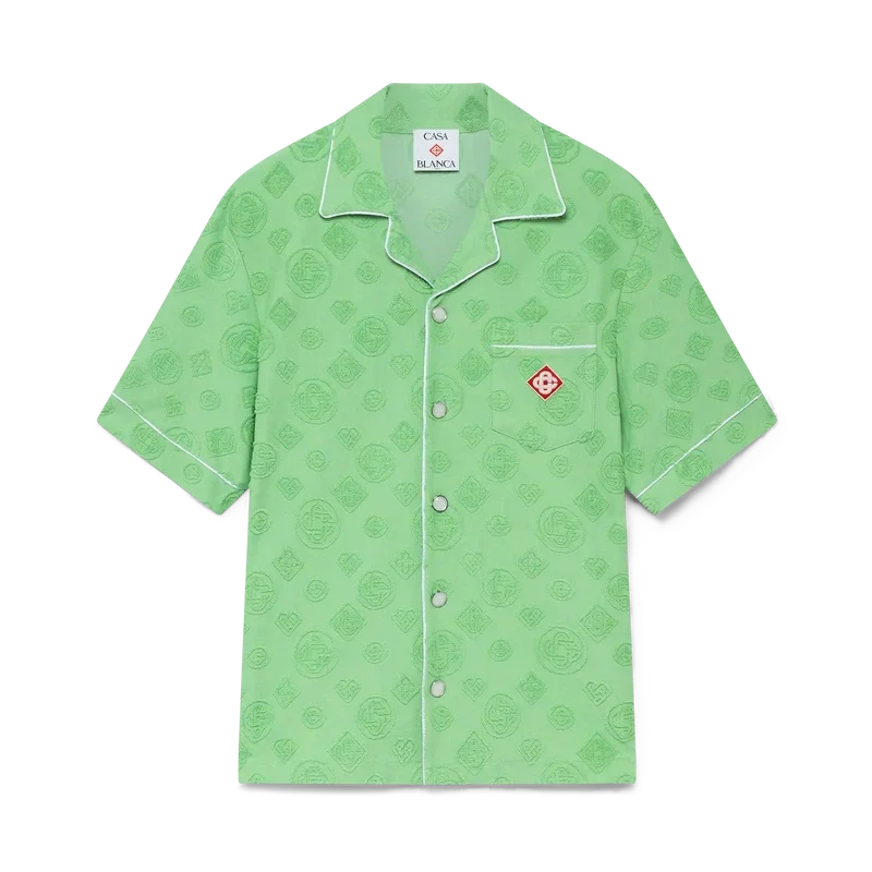 La camisa de manga corta de rizo con monograma es un diseño que presenta el estampado de Diamond Monogram característico de la casa. Se completa con un bolsillo en el pecho, ribetes en contraste, botones de perla con borde dorado característicos y cuello cubano.