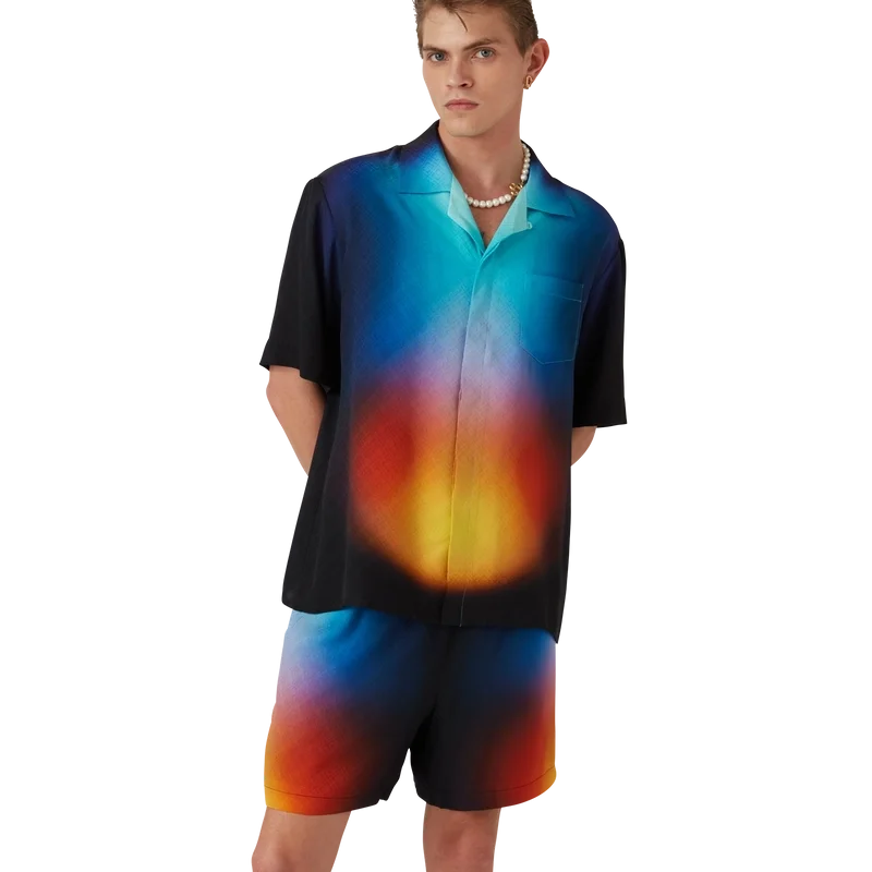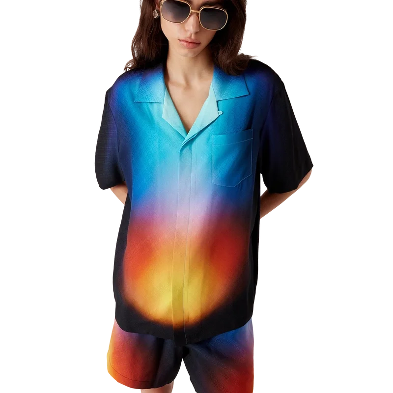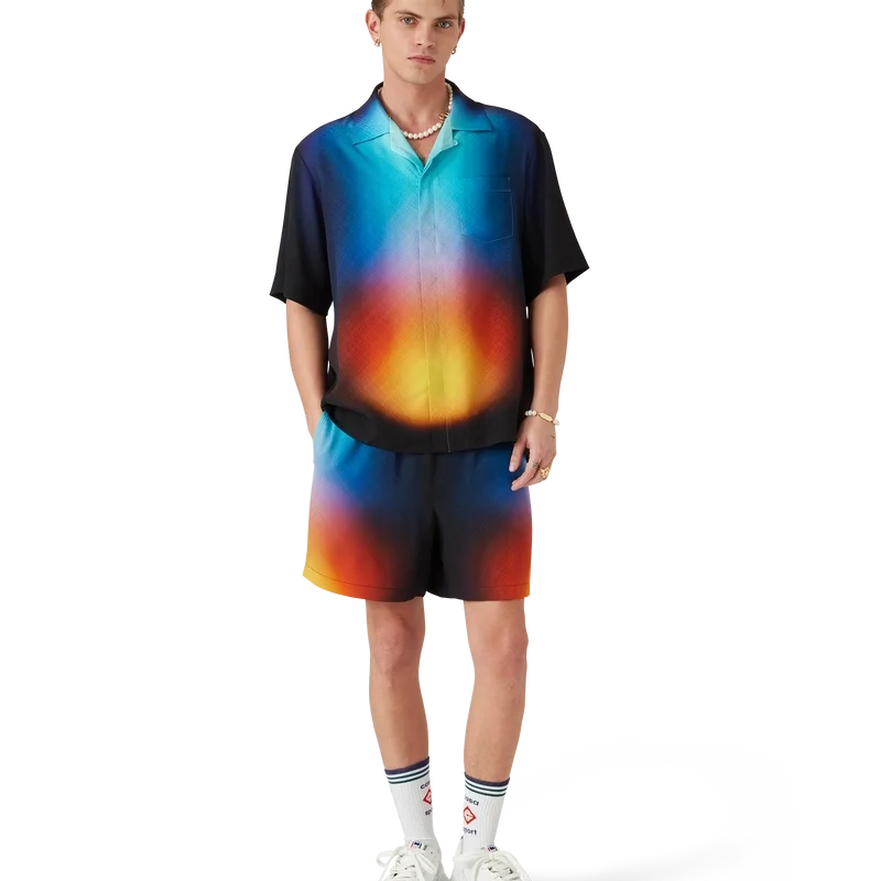 Camisa de pantalón corto de seda con estampado degradado