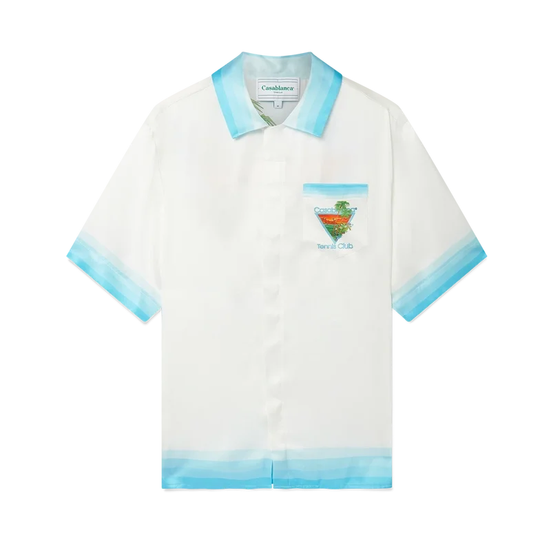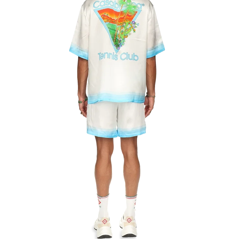 Camisas de seda con cuello cubano Palm Springs Icon Blue