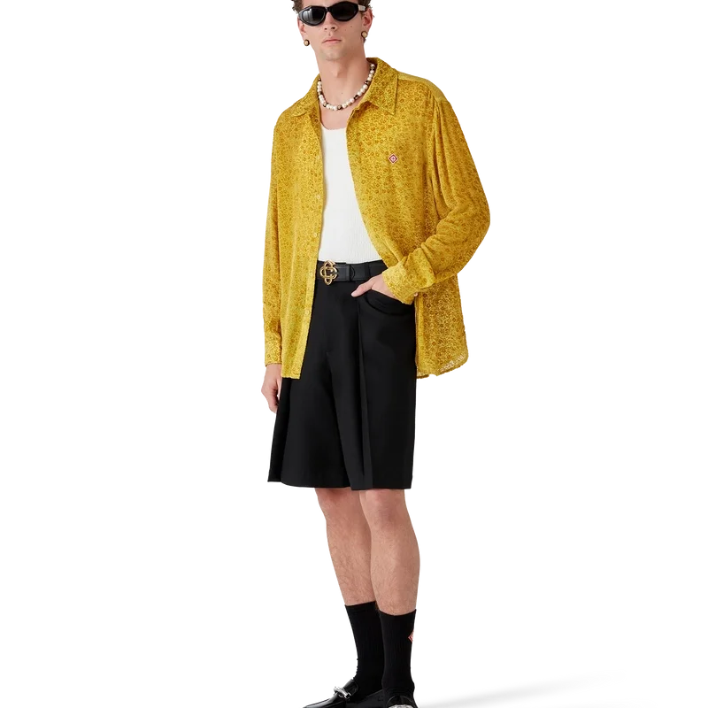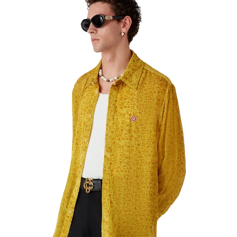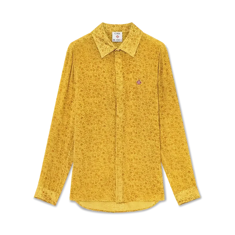 La camisa de seda Devora con estampado floral es un diseño entallado de manga larga confeccionado en tejido de seda Devora. Cuenta con cuello en punta, cierre de botones ocultos, botones de corozo con el logotipo CC entrelazado, el logotipo de diamante característico y botones esmaltados con borde dorado en el cuello y los puños.