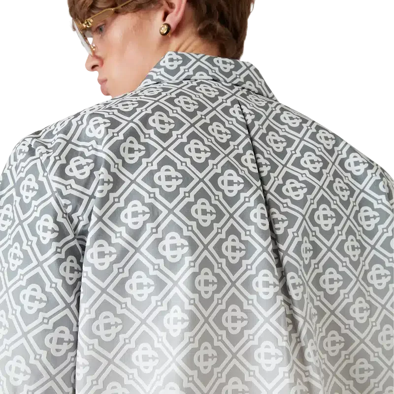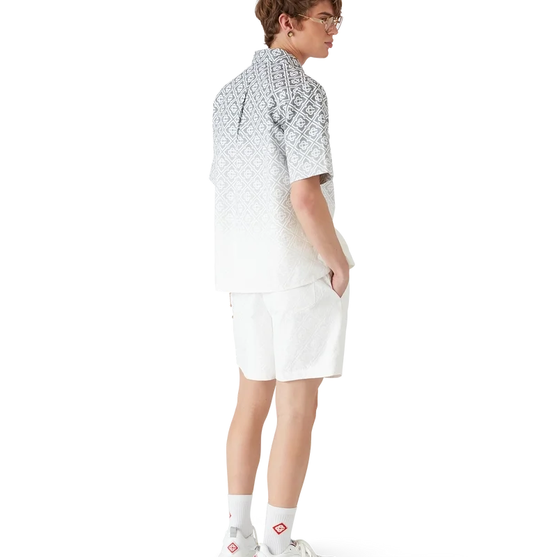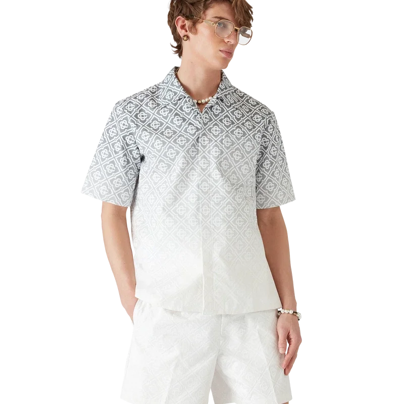 La camisa Monogram Gradient es un diseño estampado de manga corta con una silueta clásica, confeccionada en una mezcla de algodón Monogram Gradient con el característico Diamond Monogram de la casa. Se completa con cierre de botones, bolsillo en el pecho y cuello cubano.