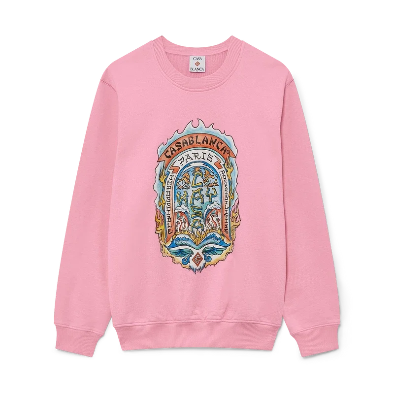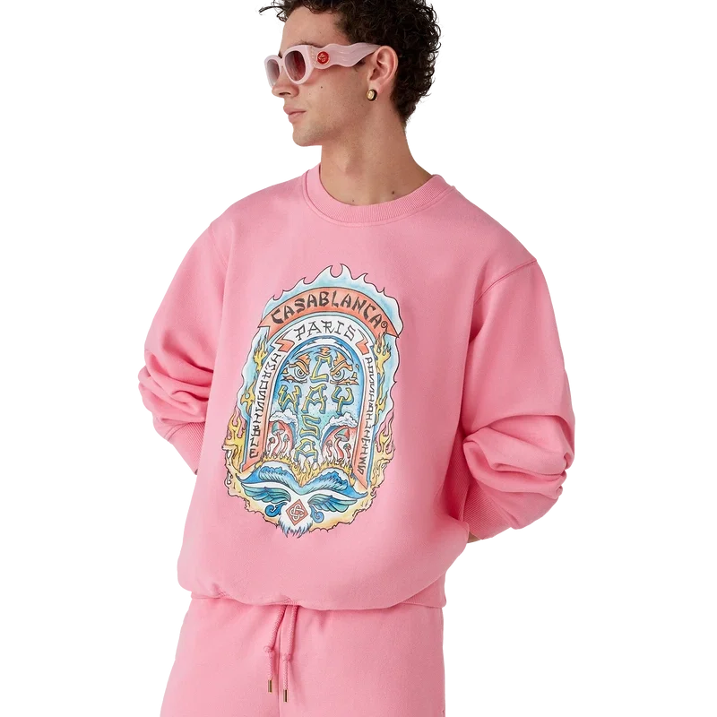 La sudadera Casa Way Skate es un diseño de manga larga confeccionado en tejido de algodón orgánico y presenta un diseño exclusivo inspirado en la insignia clásica del skate californiano de los años 70 con un marco difuminado. Se completa con un cuello redondo clásico y puños y dobladillo acanalados.