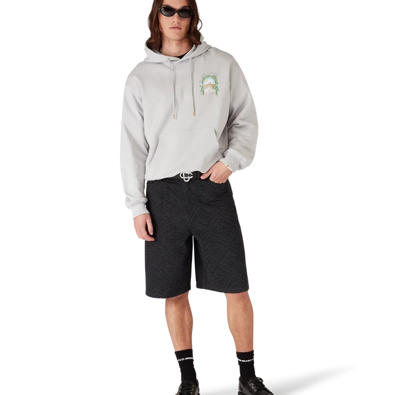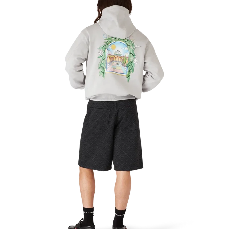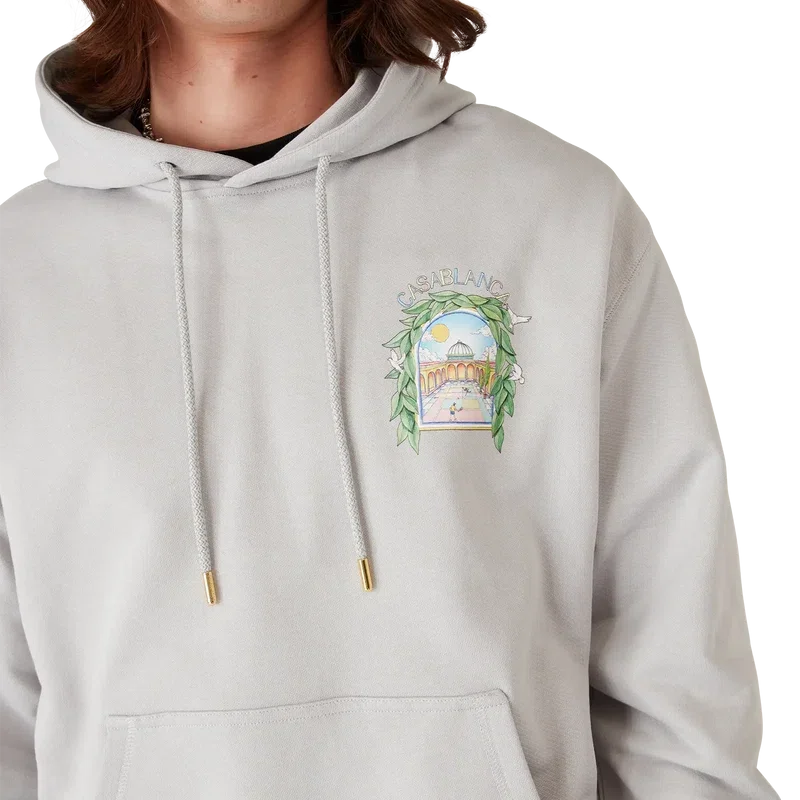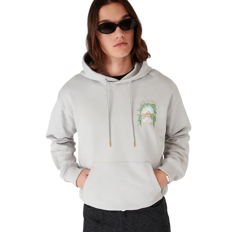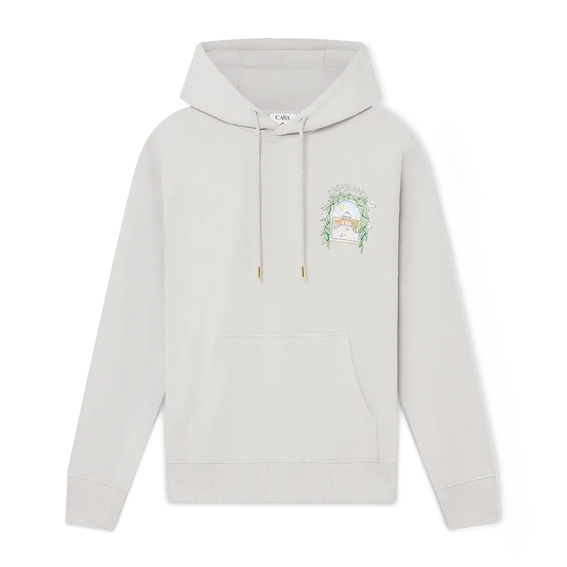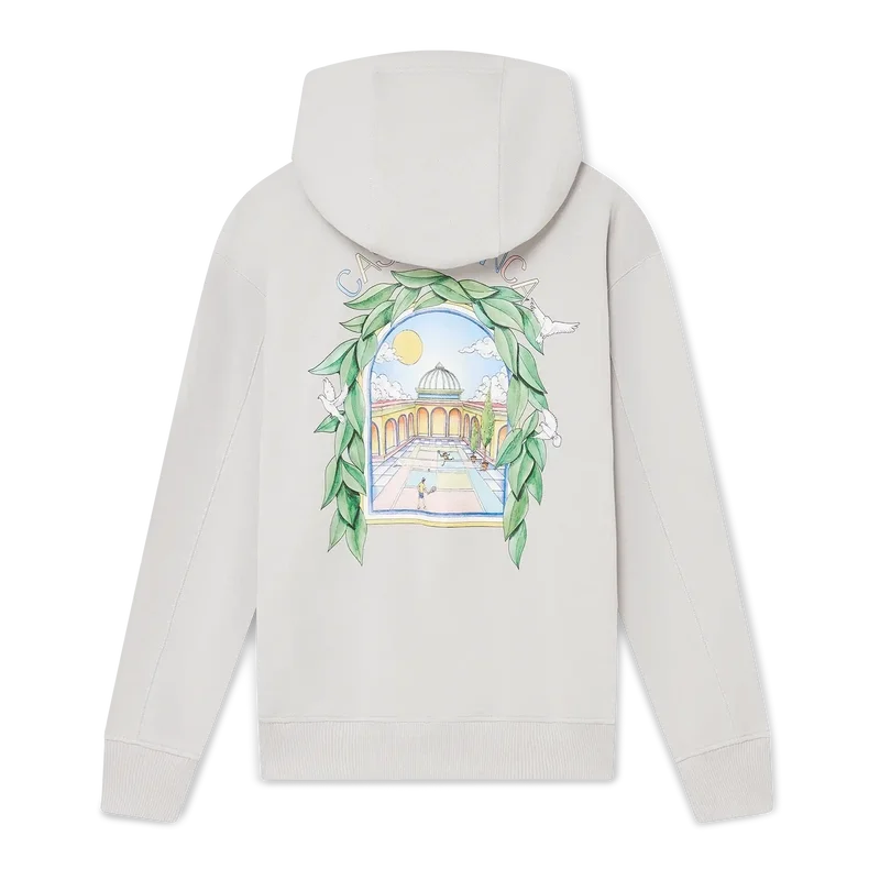 La sudadera con capucha de Casa L’arche es un diseño estampado de manga larga refinado que presenta el arte de temporada de la casa con elementos de diseño del arco, la naturaleza, la arquitectura y el tenis. Se completa con capucha, cordón de ajuste con puntas doradas y puños y dobladillo acanalados.