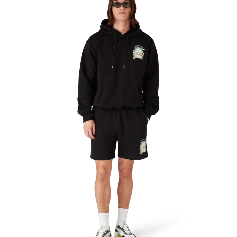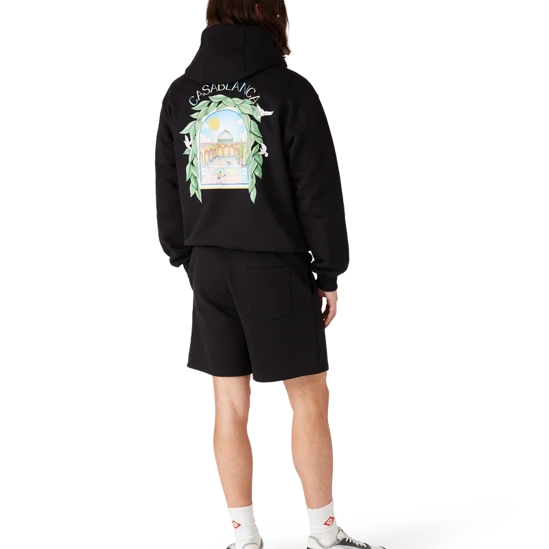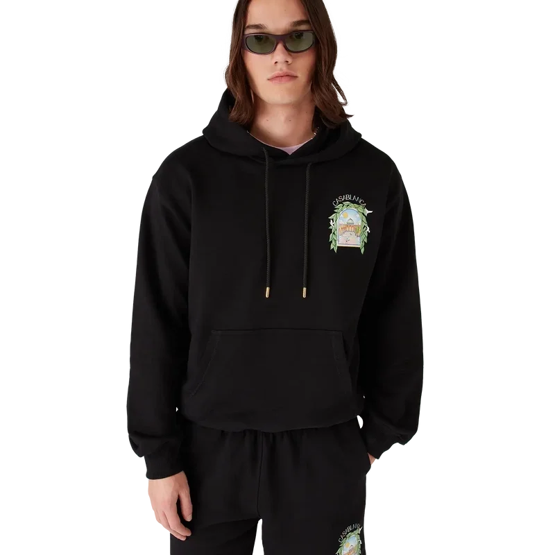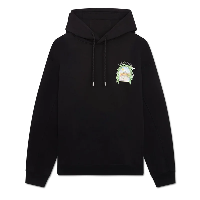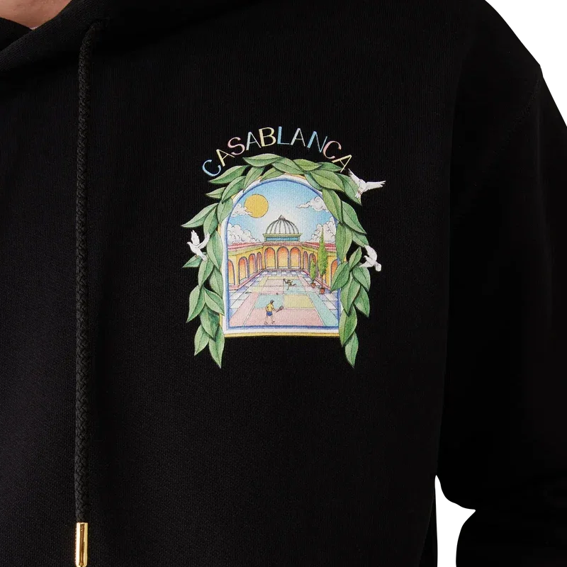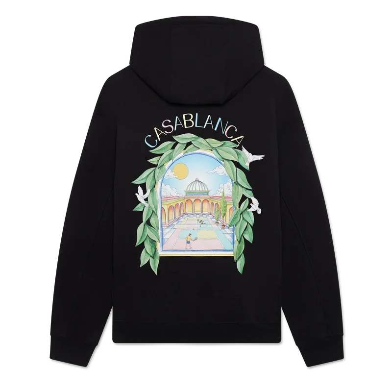 La sudadera con capucha Casa L’arche es un refinado diseño estampado de manga larga que presenta el arte de temporada de la casa con elementos de diseño del arco, la naturaleza, la arquitectura y el tenis en la parte trasera y delantera. Se completa con una capucha, cordón de cierre con puntas doradas y puños y dobladillo acanalados.