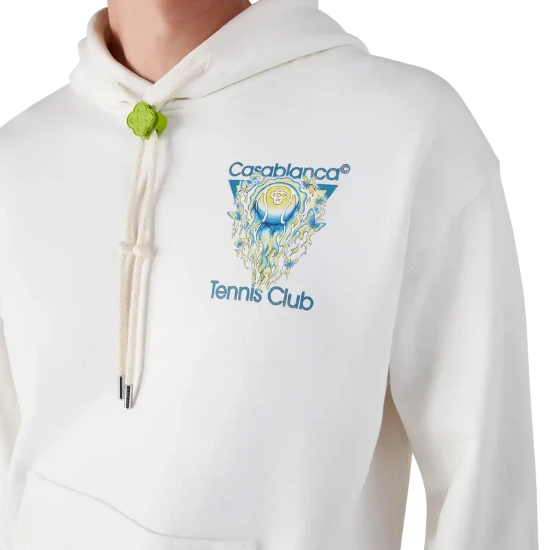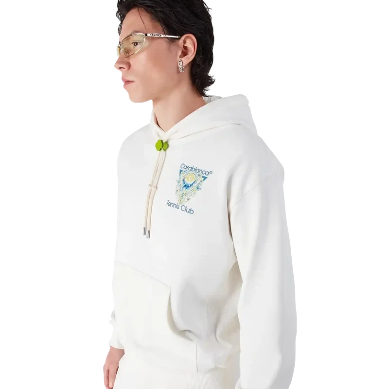 La sudadera con capucha Tennis Club Icon es un diseño deportivo refinado que presenta el distintivo logotipo de la casa: una pelota de tenis en vuelo, reflejando el equilibrio fundamental entre potencia, velocidad y control. Cuenta con cierre de cordón, capucha, puños y dobladillo acanalados, y un bolsillo canguro.