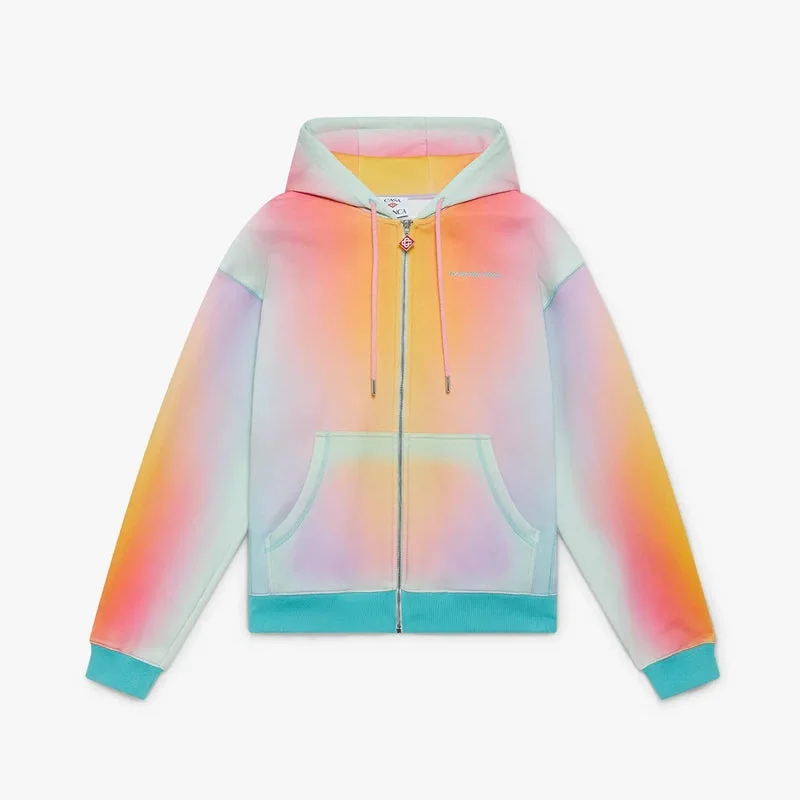 La sudadera con capucha y cremallera Glass presenta un diseño refinado con estampado integral, con ilustraciones creadas en colaboración con Martin Naumann. Conocido por su trabajo con degradados y texturas, con una mezcla de semitonos y efectos similares al vidrio.