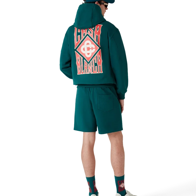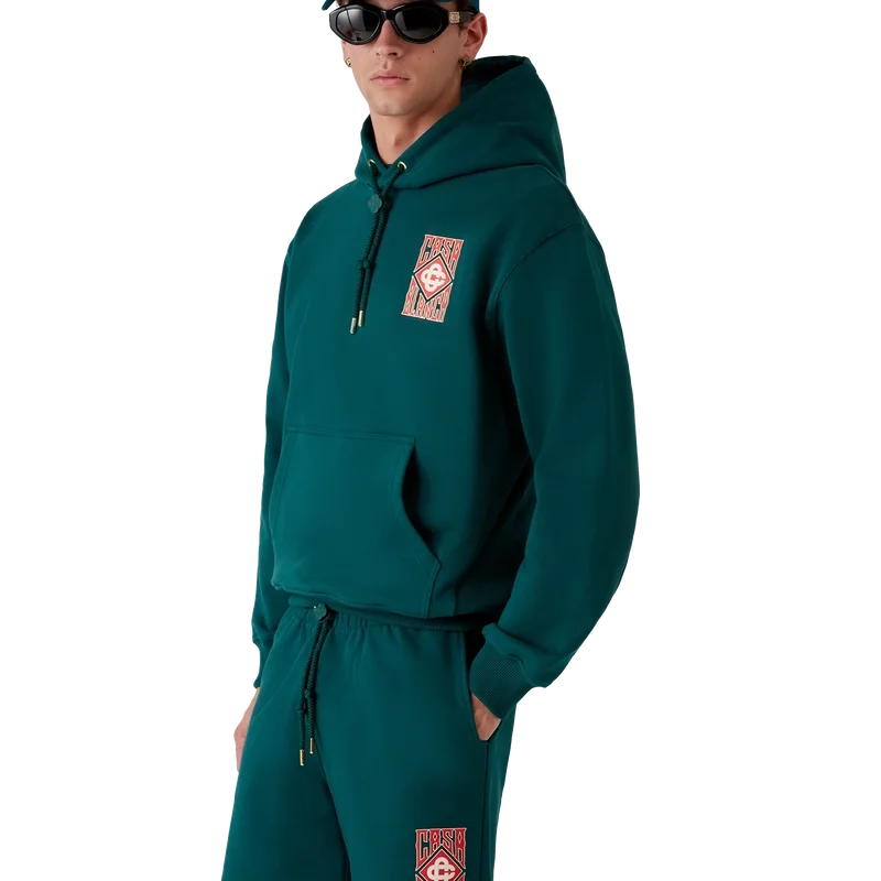 La sudadera con capucha y logotipo gótico es un diseño clásico que presenta la tipografía gótica de la temporada y el logotipo de diamante característico de la casa. Se completa con una capucha, cordón de cierre con puntas doradas, un cierre de madera con el logotipo de la marca, un bolsillo canguro y puños y dobladillo acanalados.