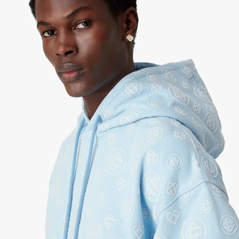 La sudadera con capucha y monograma bordado presenta un diseño refinado, con el monograma bordado característico de la casa. Cuenta con capucha, cierre con cordón, bolsillo canguro y puños y dobladillo acanalados.