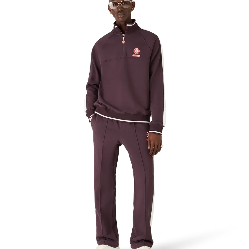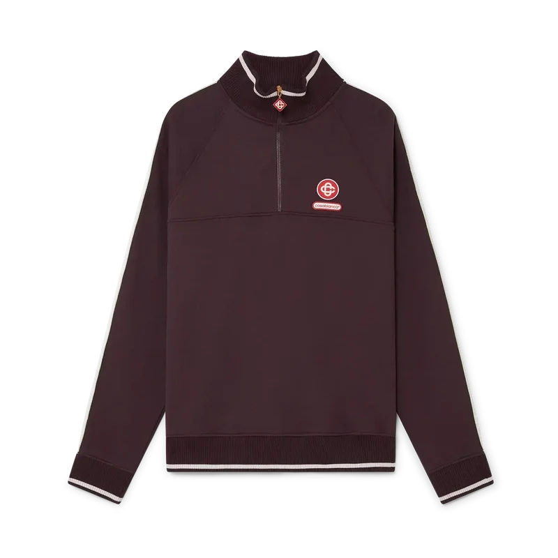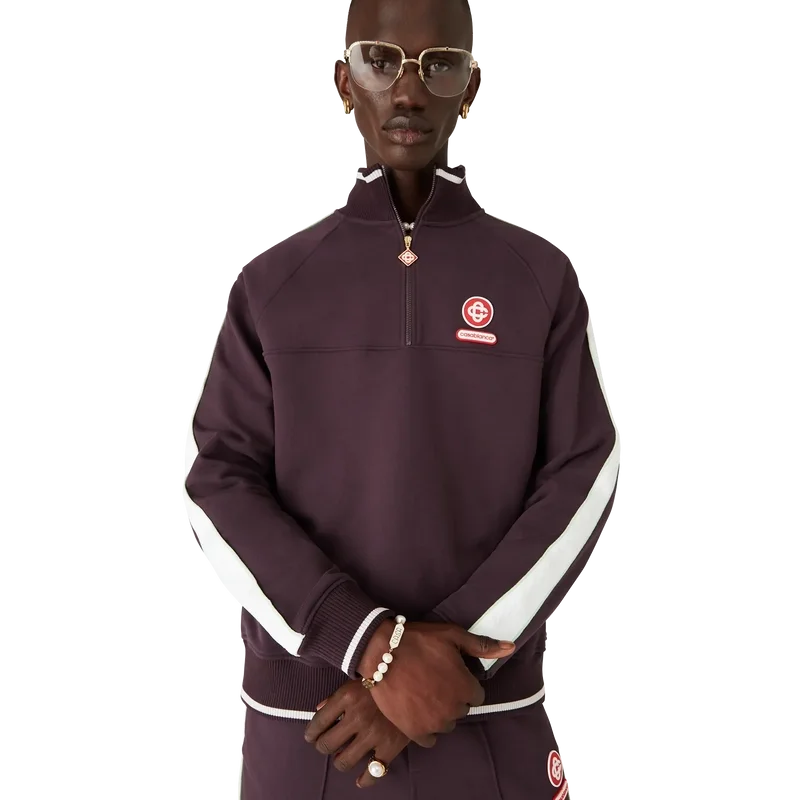 La sudadera Laurel con cremallera de un cuarto es un diseño de manga larga que presenta el logotipo entrelazado «Cc» de la casa y el parche con el logotipo de Casablanca. Se completa con un cierre de cremallera de un cuarto con la lengüeta de cremallera con el logotipo de diamante característico, detalles de cinta Laurel blanca en las mangas y cuello, puños y dobladillo acanalados con detalle de borde blanco.