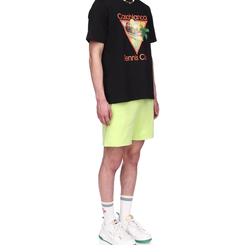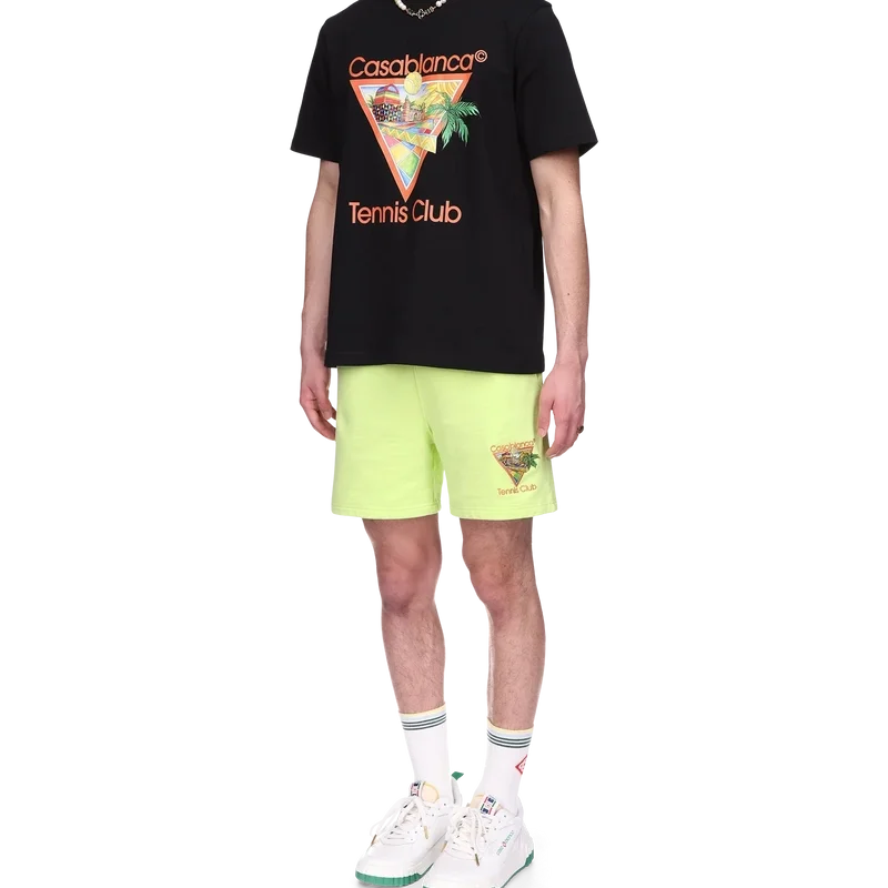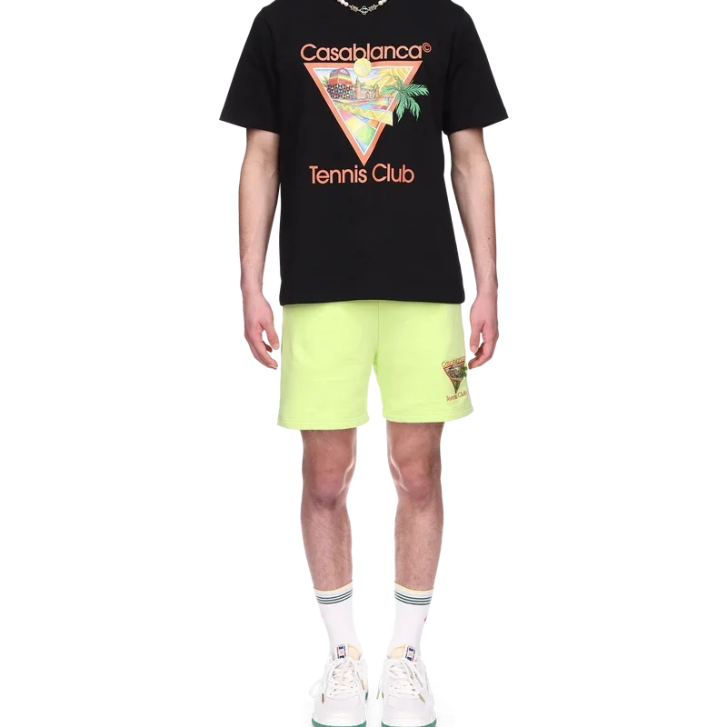 La camiseta Afro Cubism Tennis Club presenta un diseño estampado inspirado en la calidez de la arquitectura tradicional de Nigeria; la belleza del arte tradicional y orgánico se representa como un paisaje, manteniendo nuestra composición tradicional: la palmera, la perspectiva del edificio y una cancha de tenis. Confeccionada en algodón orgánico, con cuello redondo clásico.