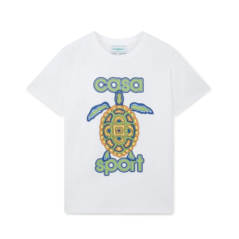 La camiseta blanca Casa Turtle, confeccionada en algodón orgánico y serigrafiada, presenta nuestro característico naranja en un diseño de temporada. Hecha de algodón 100 % orgánico, cuenta con un cuello redondo clásico y mangas cortas, y ha sido diseñada para ofrecer un ajuste holgado.