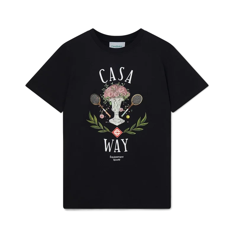 La camiseta de algodón orgánico serigrafiada «Casa Way» presenta una versión de temporada de nuestro diseño emblemático «Casa Way».