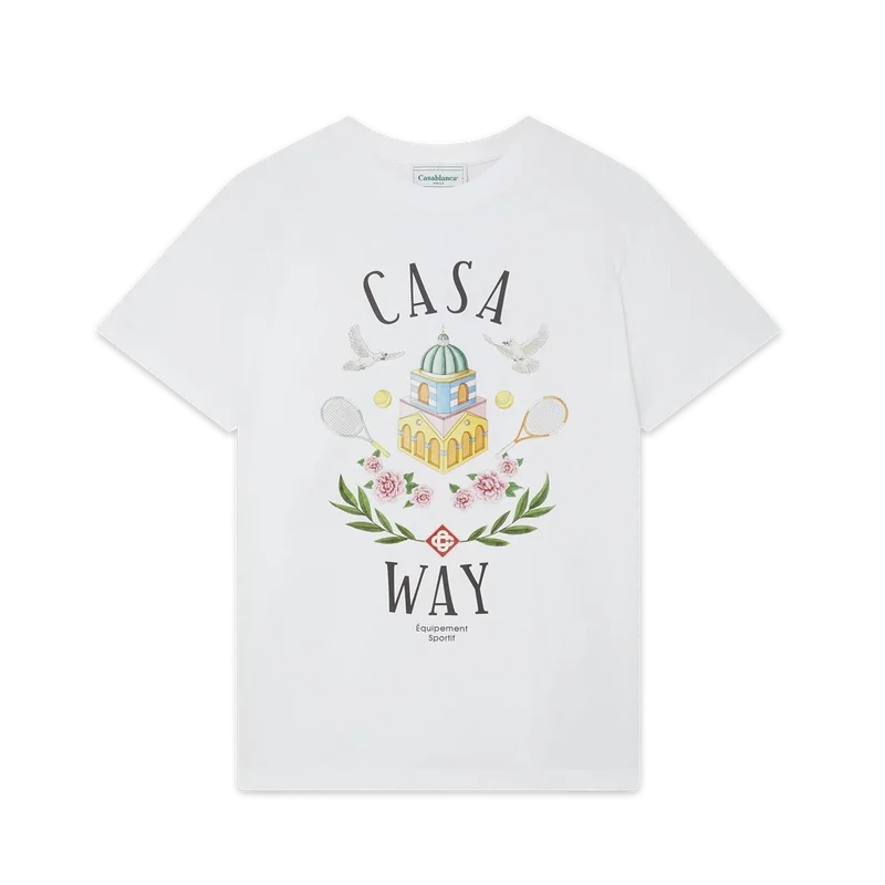 La camiseta de algodón orgánico serigrafiada Casa Way presenta una versión de temporada de nuestro diseño exclusivo Casa Way. Con cuello redondo clásico, mangas cortas y etiqueta con la marca Casablanca Paris, diseñada para un ajuste holgado.