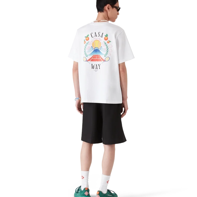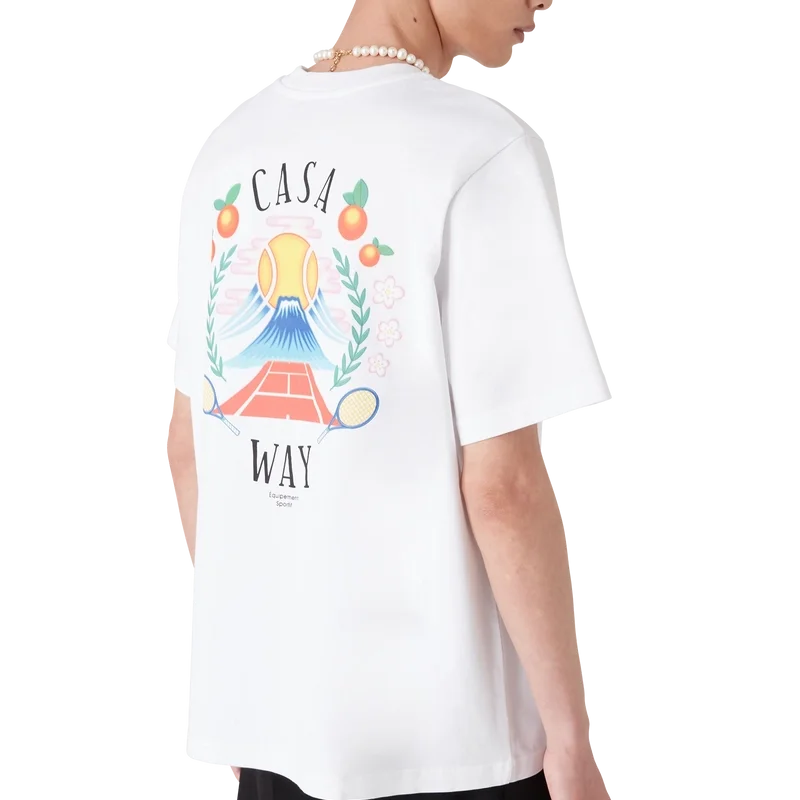 La camiseta Casa Way Mountain es un diseño de manga corta confeccionado en tejido de algodón orgánico y presenta el diseño de temporada de la marca reinterpretado para esta temporada. Se completa con un clásico cuello redondo.
