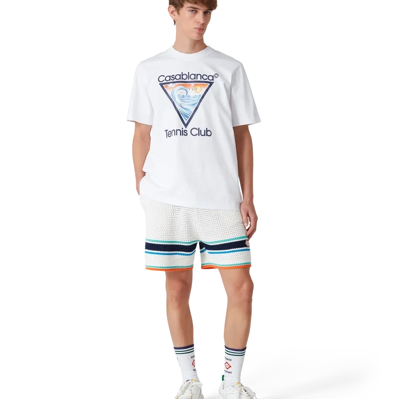 La camiseta Tennis Club Icon es un diseño estampado de manga corta confeccionado en tejido de algodón orgánico que presenta una versión de temporada de nuestro emblemático diseño Tennis Club Icon con elementos de la naturaleza, la arquitectura y el tenis. Se completa con un clásico cuello redondo.