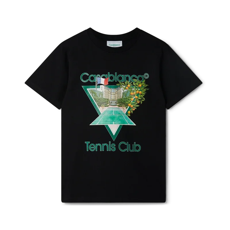 La camiseta de algodón orgánico serigrafiada con el icono del club de tenis presenta una versión de temporada de nuestro diseño característico del icono del club de tenis. Con cuello redondo clásico, mangas cortas y etiqueta con la marca Casablanca Paris, diseñada para un ajuste holgado.