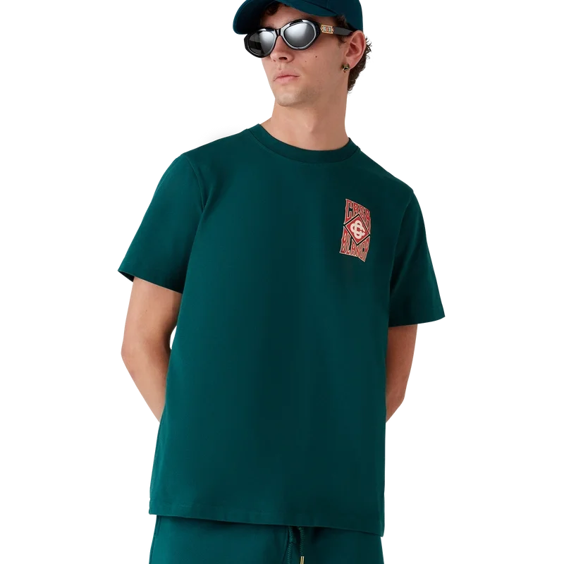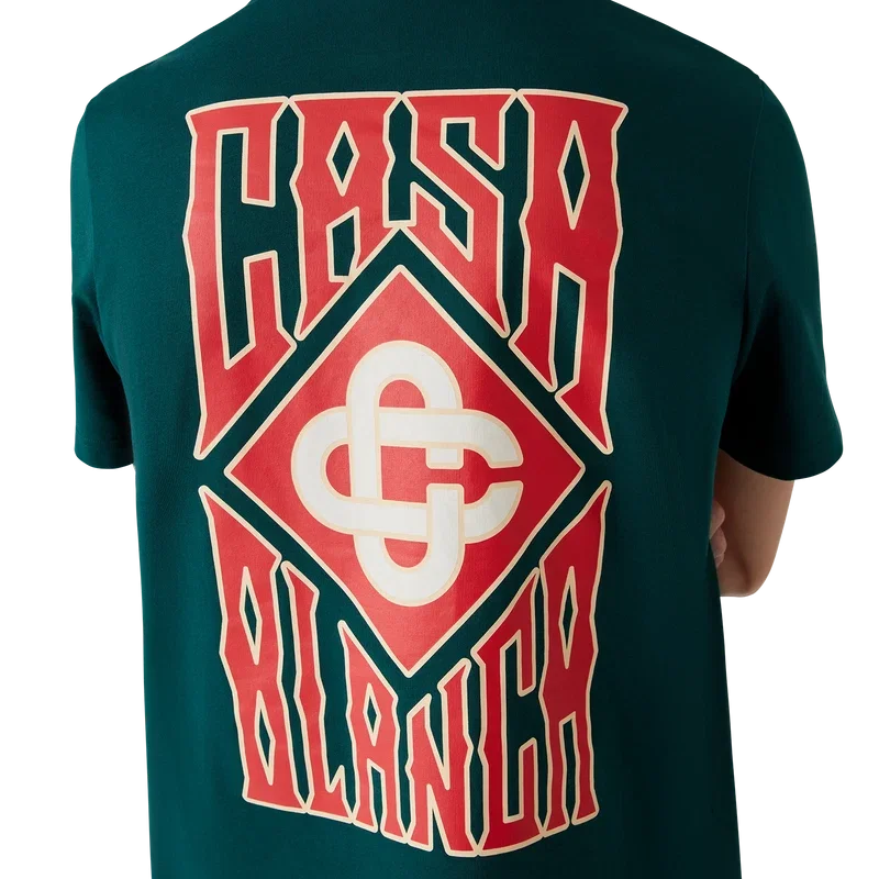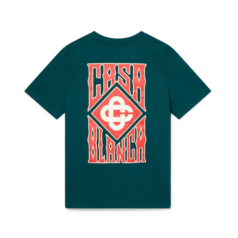 La camiseta Gothic Casa Way es un diseño estampado de manga corta confeccionado en tejido de algodón orgánico y presenta el logotipo apilado de la casa utilizando tipografía gótica y el logotipo del diamante característico. Se completa con un cuello redondo clásico.