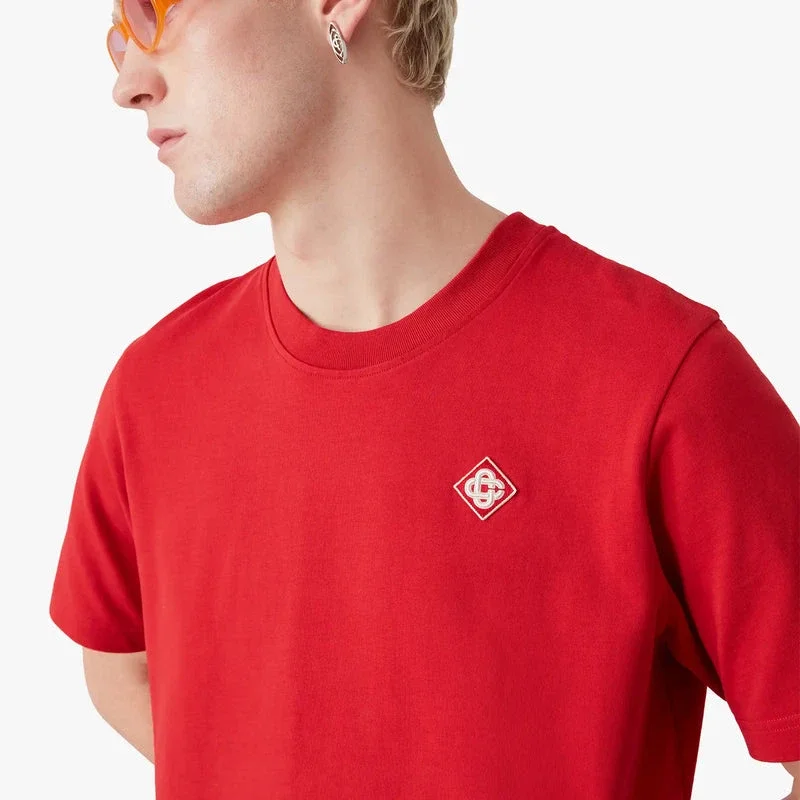 La camiseta de manga corta con el logotipo del diamante rojo tiene un diseño refinado, con el logotipo del diamante de la casa. Se completa con un cuello redondo clásico y una silueta holgada.
