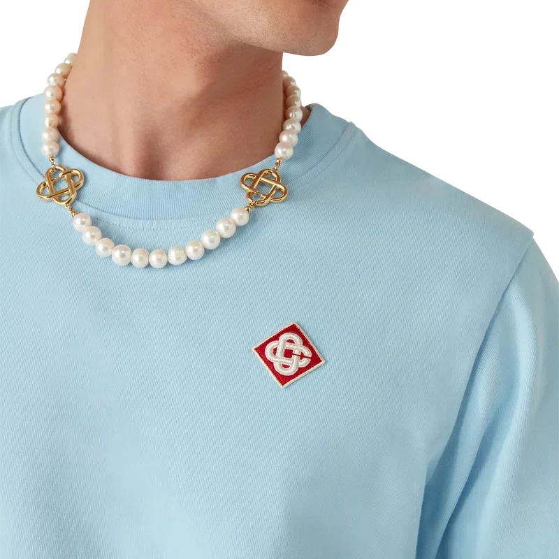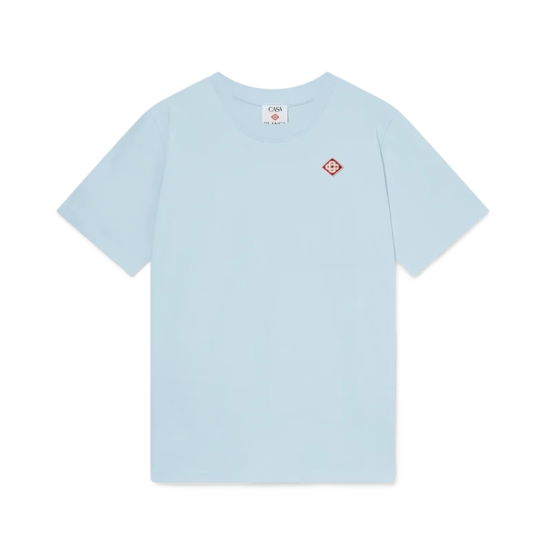 La camiseta con el logotipo del diamante es un modelo de manga corta de algodón orgánico que luce el parche con el logotipo del diamante característico de la casa en el lado izquierdo del pecho. Acabada con un cuello redondo clásico y una etiqueta con la marca Casablanca.