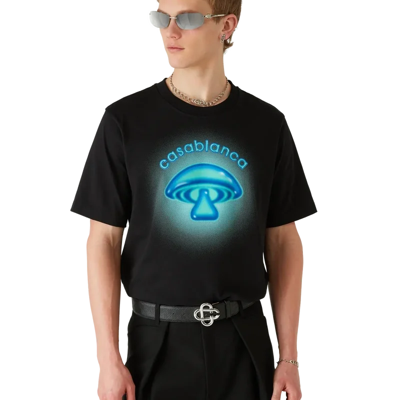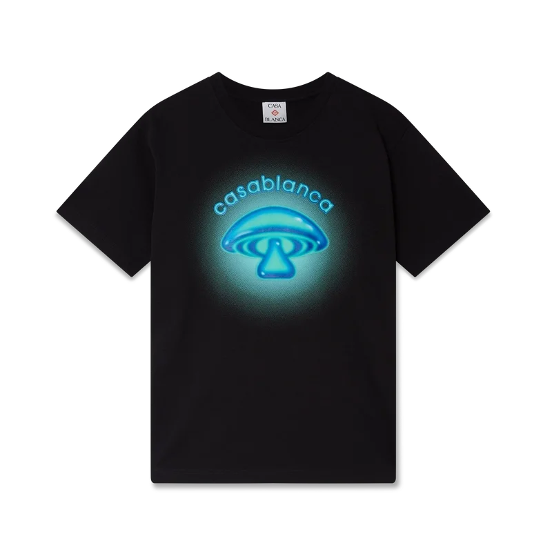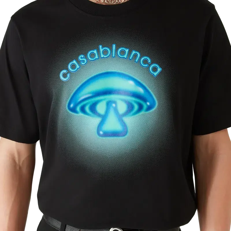 La camiseta con logotipo de seta pintado con aerógrafo es un diseño estampado de manga corta refinado que presenta un diseño basado en nuestros experimentos previos con la técnica del aerógrafo y uno de los elementos de diseño de la casa: la seta. Se completa con un cuello redondo clásico.