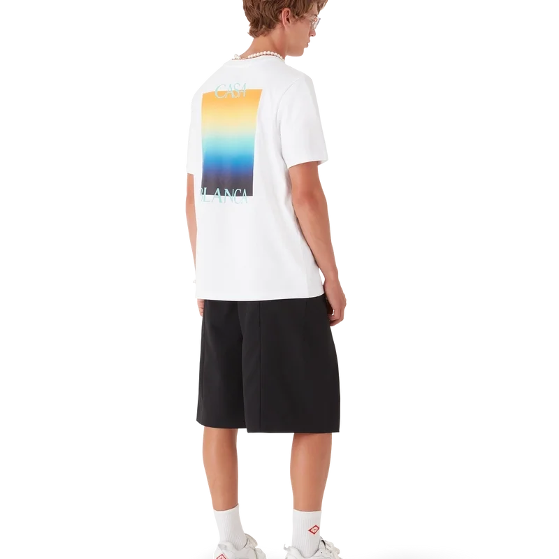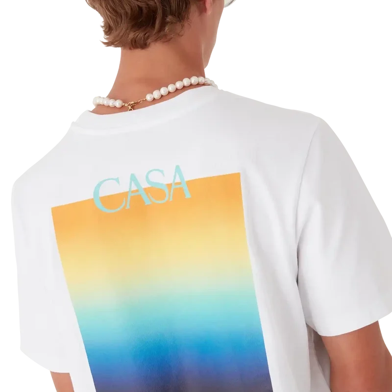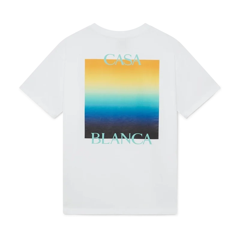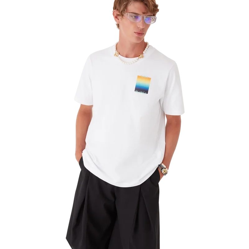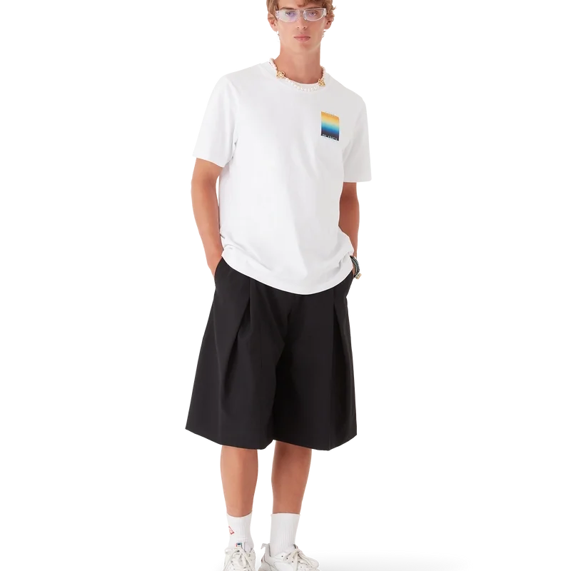 La camiseta Gradient Square es un diseño estampado de manga corta que presenta el logotipo apilado de la casa y el cuadrado degradado de la temporada, siguiendo nuestra tradición de reinterpretar las poderosas paletas de colores naturales de la naturaleza – Nuestro degradado de temporada se inspira en los tonos naturales vivos y llamativos de las ranas dardo venenosas; los tonos intensos, que van del azul al amarillo, significan una advertencia en la naturaleza y se utilizan con la misma intención de llamar la atención en nuestros estampados. Confeccionada en tejido de algodón orgánico y rematada con un clásico cuello redondo.
