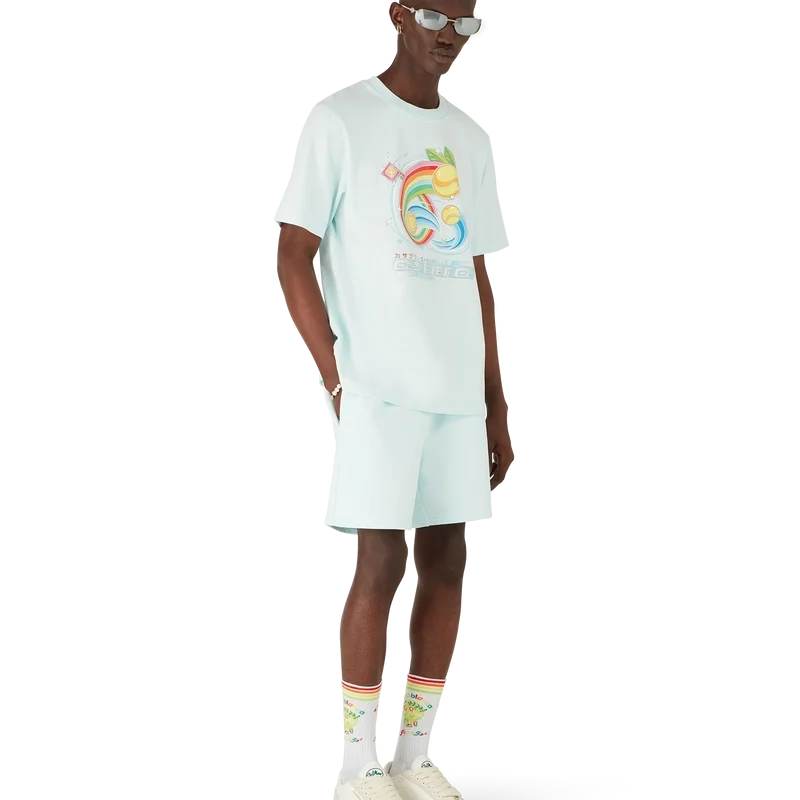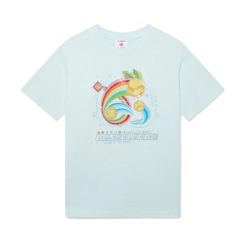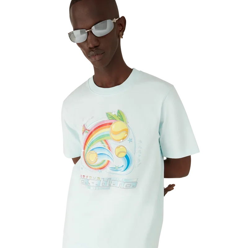 La camiseta Manga Tennis Ball es un diseño de manga corta confeccionado en tejido de algodón orgánico con un estampado de temporada que sigue explorando el mundo del kawaii y el manga, jugando con la iconografía de Casablanca y utilizando pelotas de tenis en lugar de naranjas para darle un toque divertido. Se completa con un cuello redondo clásico.