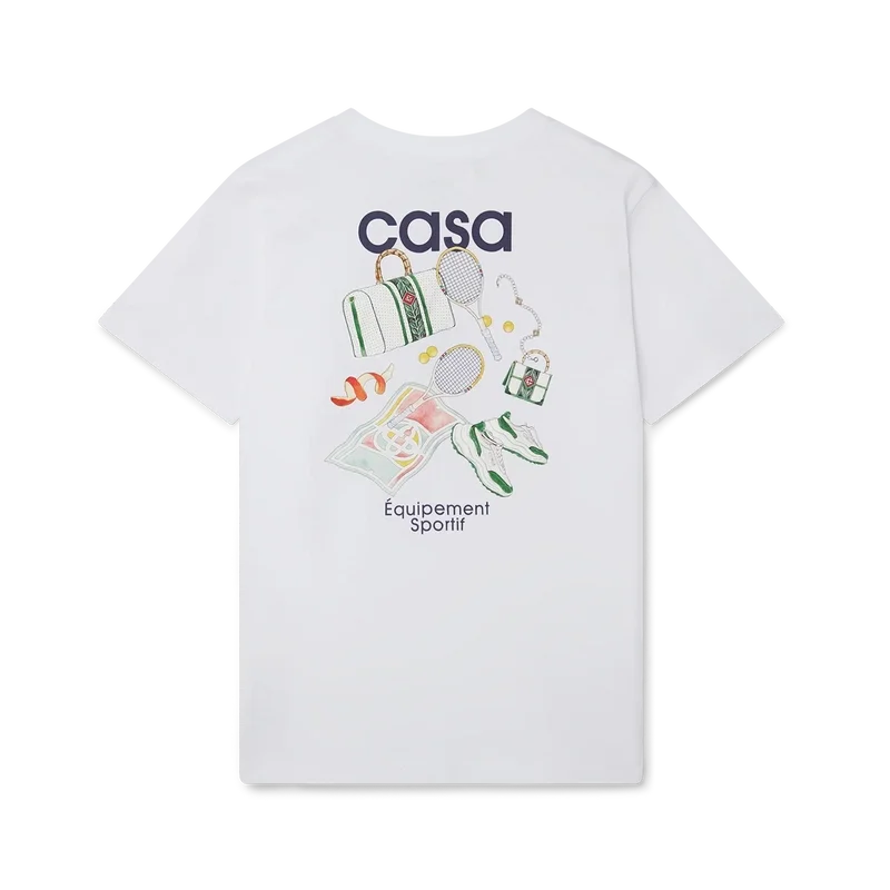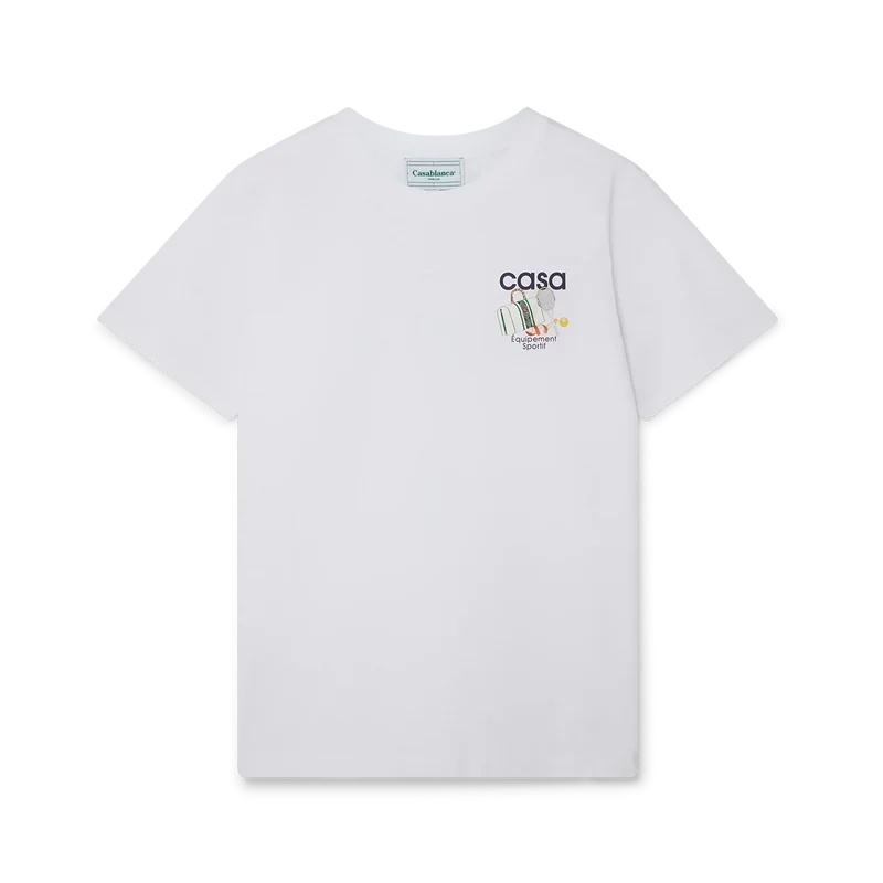 La camiseta Equipement Sportif presenta un estampado del diseño característico de la casa, reinterpretado para esta temporada, en la zona izquierda del pecho y repetido en un estampado más grande en la espalda. Confeccionada en 100 % algodón orgánico y rematada con un clásico cuello redondo y una etiqueta con la marca Casablanca.