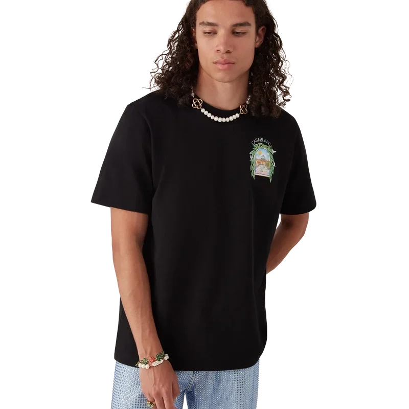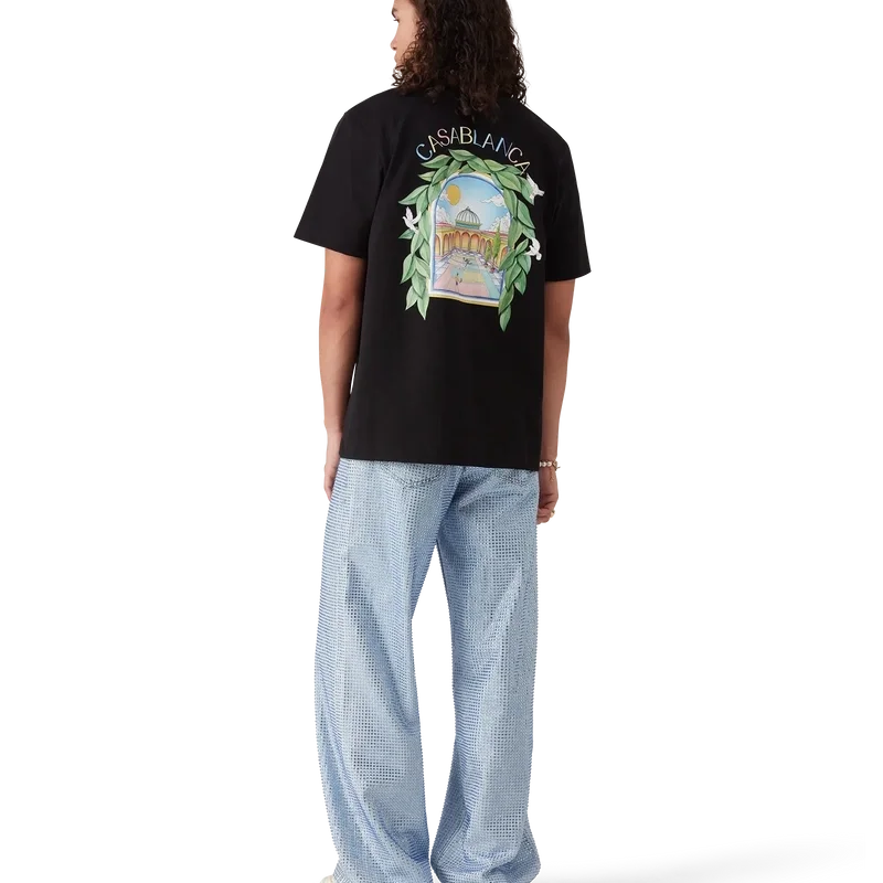 La camiseta L’arche De Tennis es un diseño de manga corta con un estampado serigrafiado de temporada en el que el libre fluir de la naturaleza se une a la estructura del diseño artificial: el arco, un símbolo abstracto de fuerza. Se completa con un clásico cuello redondo.