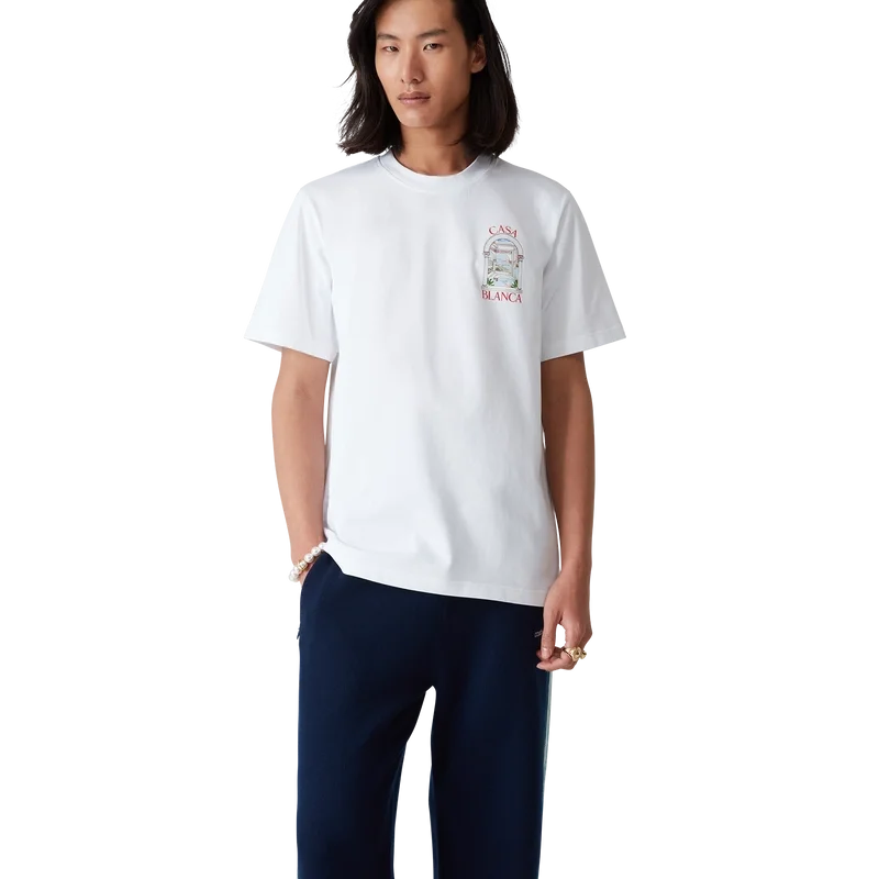 La camiseta Le Passage es un diseño de manga corta confeccionado en algodón orgánico que presenta el diseño de temporada de la casa: cuatro dimensiones diferentes que juegan con las perspectivas y la arquitectura. Se completa con un cuello redondo clásico.