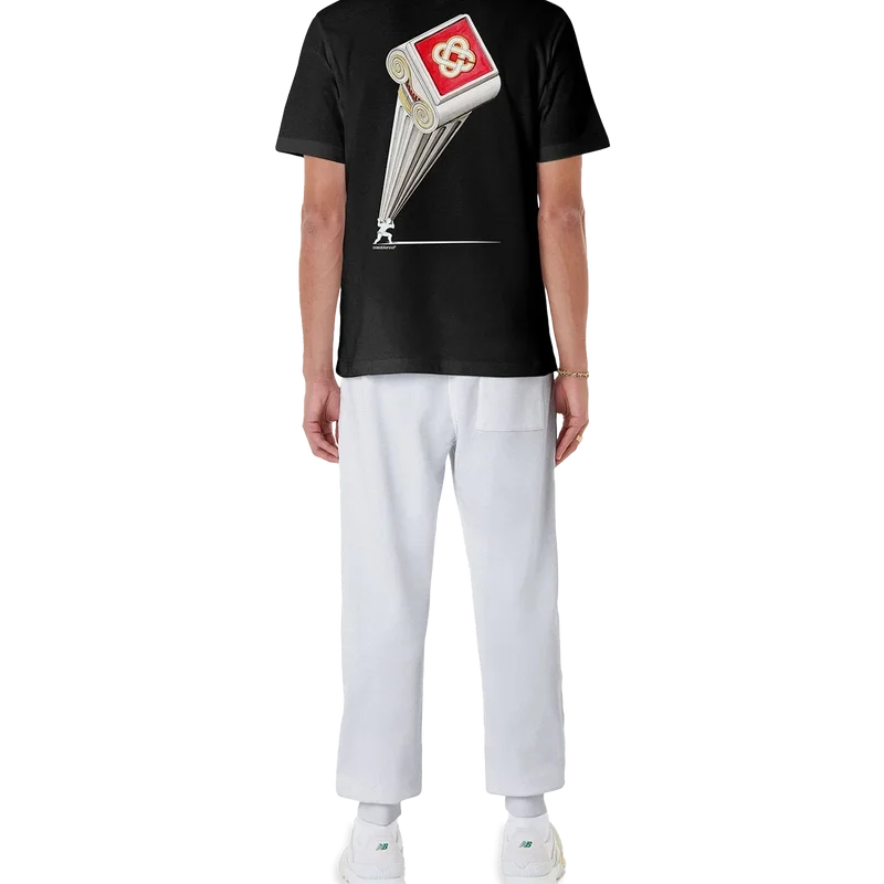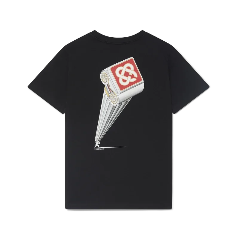 La camiseta Leaning Column es un diseño estampado de manga corta confeccionado en tejido de algodón orgánico que presenta el diseño de temporada de la casa, inspirado en un cartel de cine vintage y en la Antigua Grecia. Acabada con un cuello redondo clásico.<!–