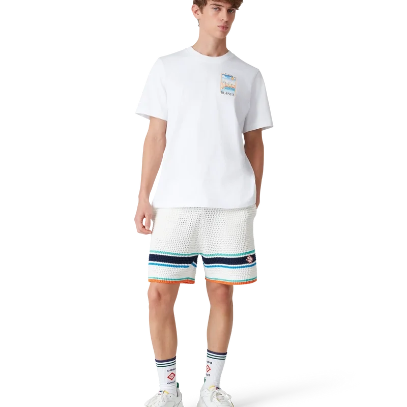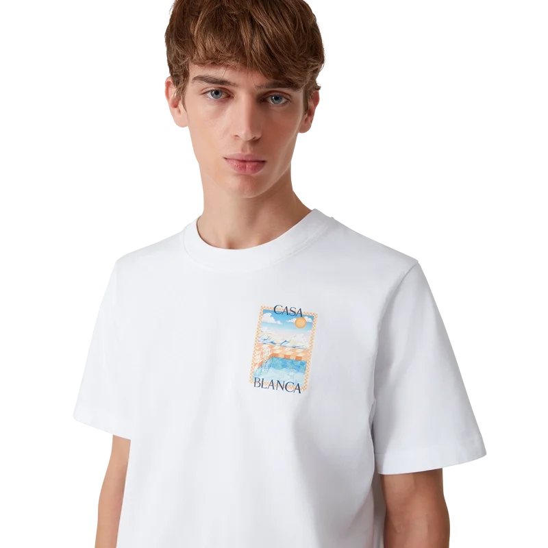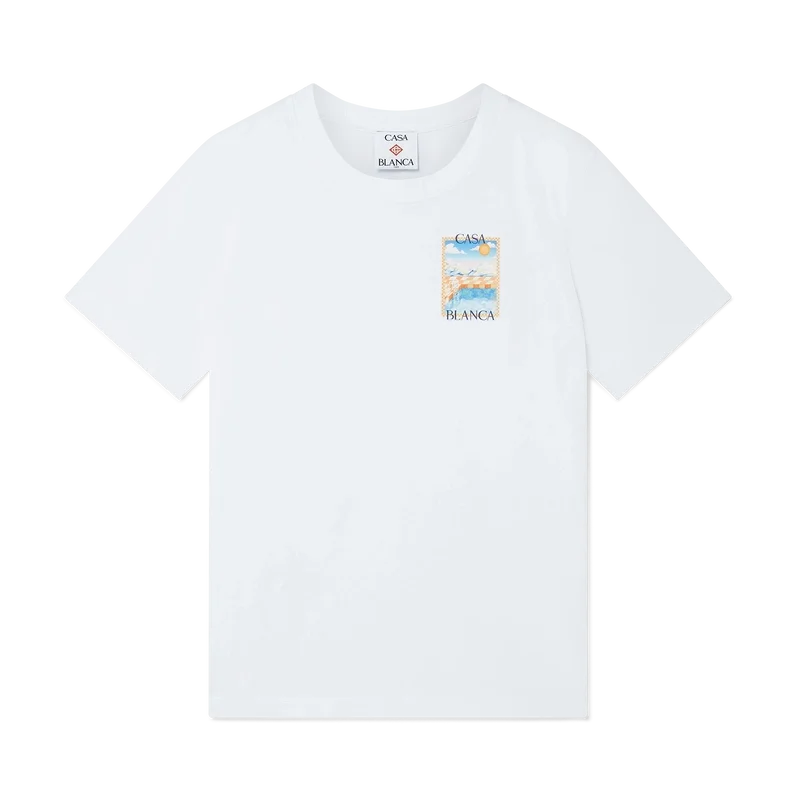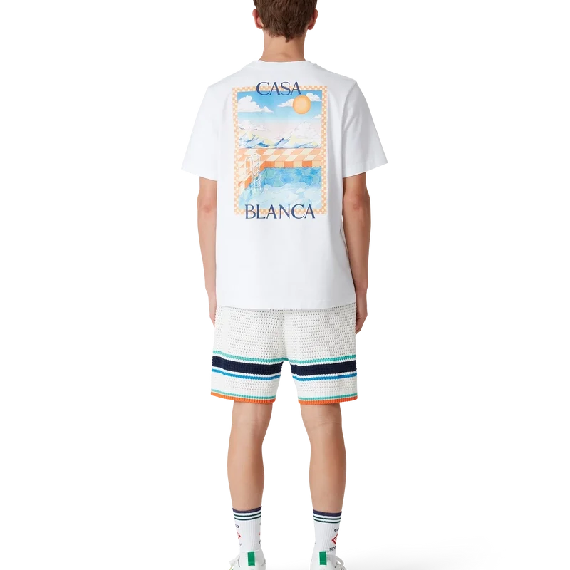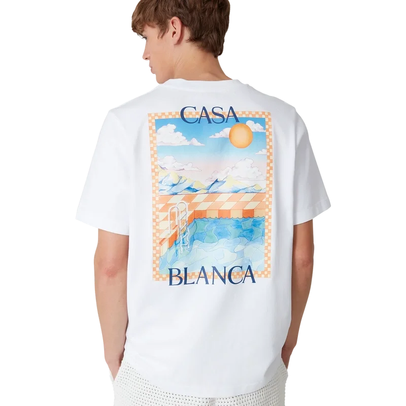 La camiseta Surreal Pool es un diseño estampado de manga corta confeccionado en tela de algodón orgánico y presenta escenas pintadas a mano creadas especialmente para la colección. Se completa con un cuello redondo clásico.