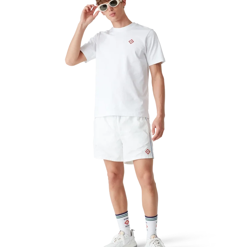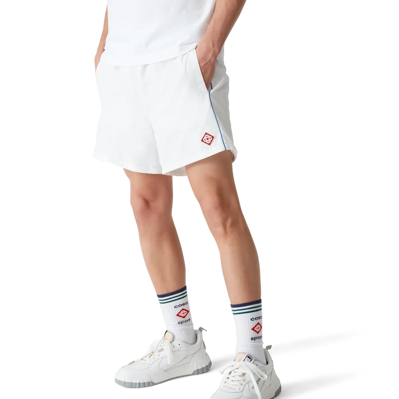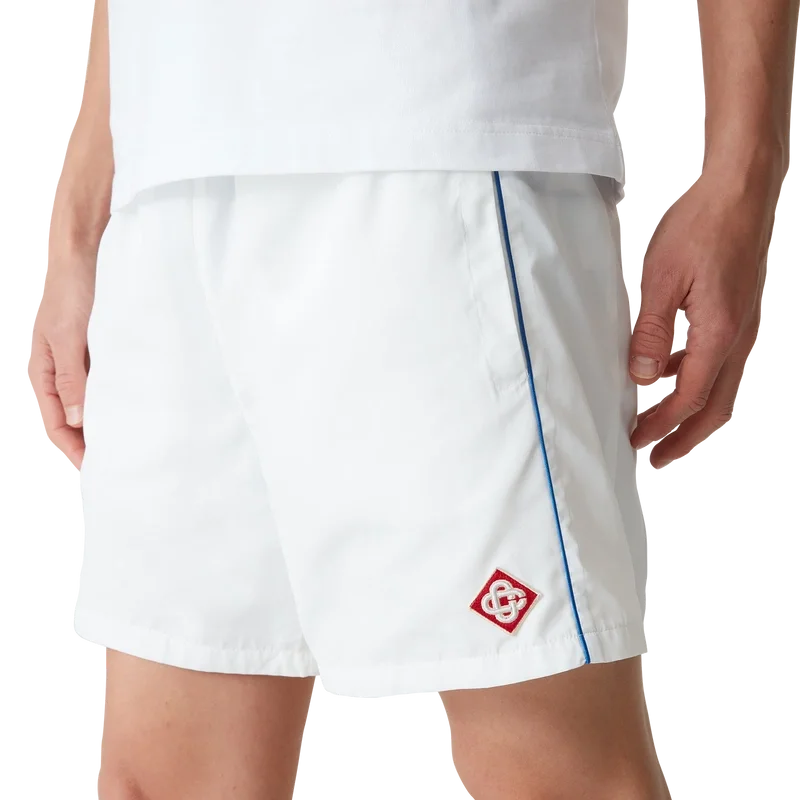 Los pantalones cortos cortavientos Midnight Acropolis son un diseño clásico confeccionado en tejido de tafetán de poliéster. Cuentan con cintura elástica, cierre con cordón, ribete azul, bolsillos en las costuras y forro de malla.