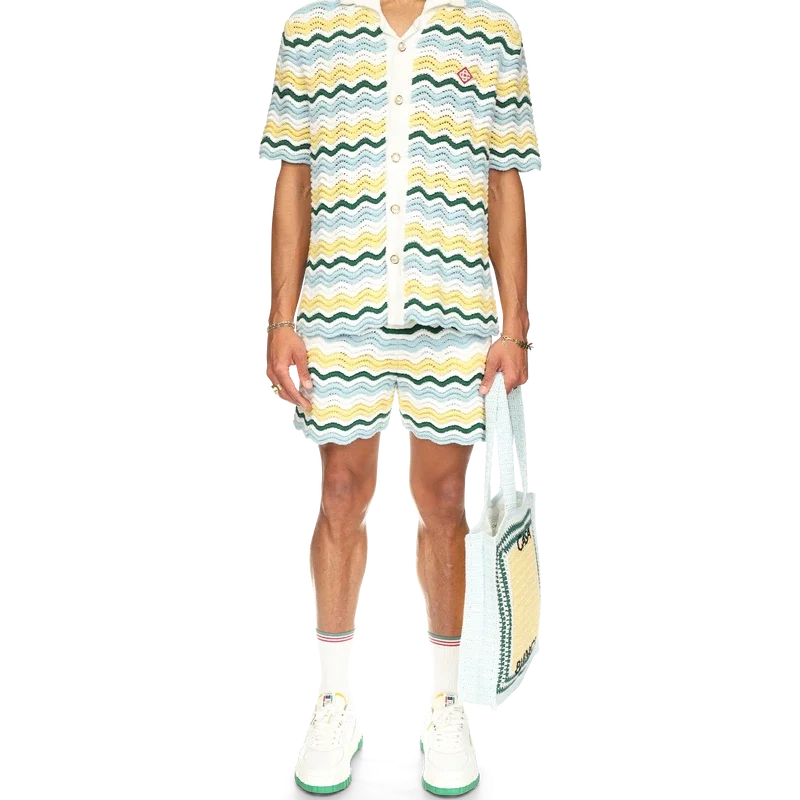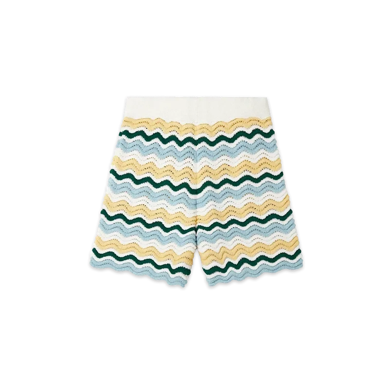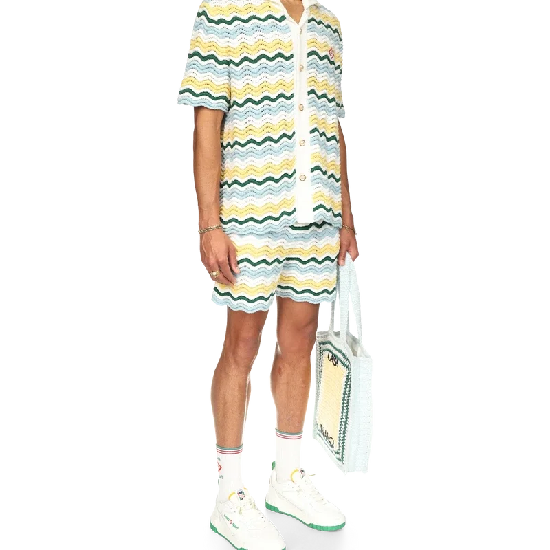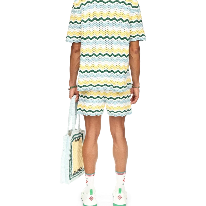Los pantalones cortos de bouclé ondulado son un diseño emblemático de Casablanca confeccionado con un tejido de bouclé de textura suave y tejido abierto. Acabados con un cordón interno, el logotipo del diamante de la casa y una etiqueta con la marca Casablanca. Diseñados para llevarse con un corte clásico.